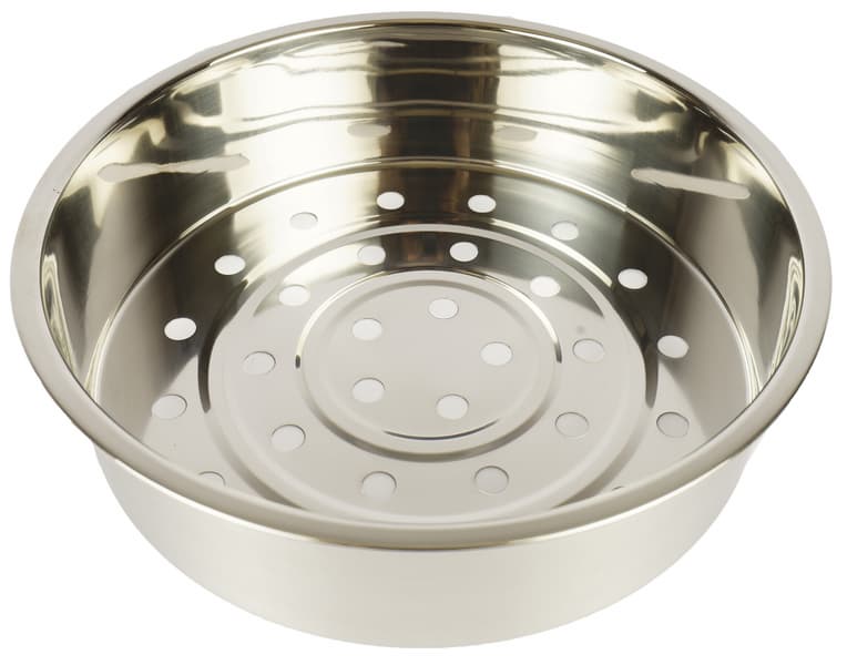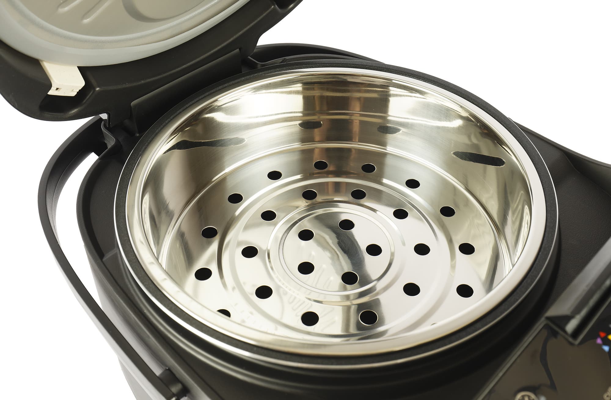 В комплекте к прибору идет контейнер для приготовления на пару́ из нержавеющей стали. Он ставится на чашу мультиварки сверху.