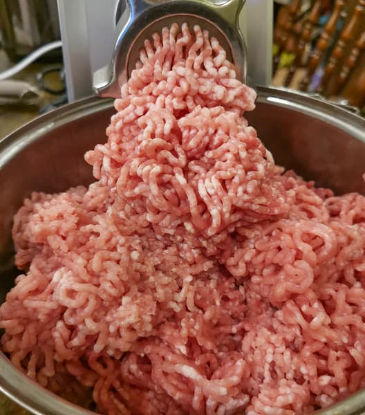 Для запеканки мы взяли картошку, морковь, свинину, яйца и специи. Овощи и мясо измельчили с помощью мясорубки. Получили мелко натертую картошку и морковь, рубленый фарш, в который мы добавили соль и специи.