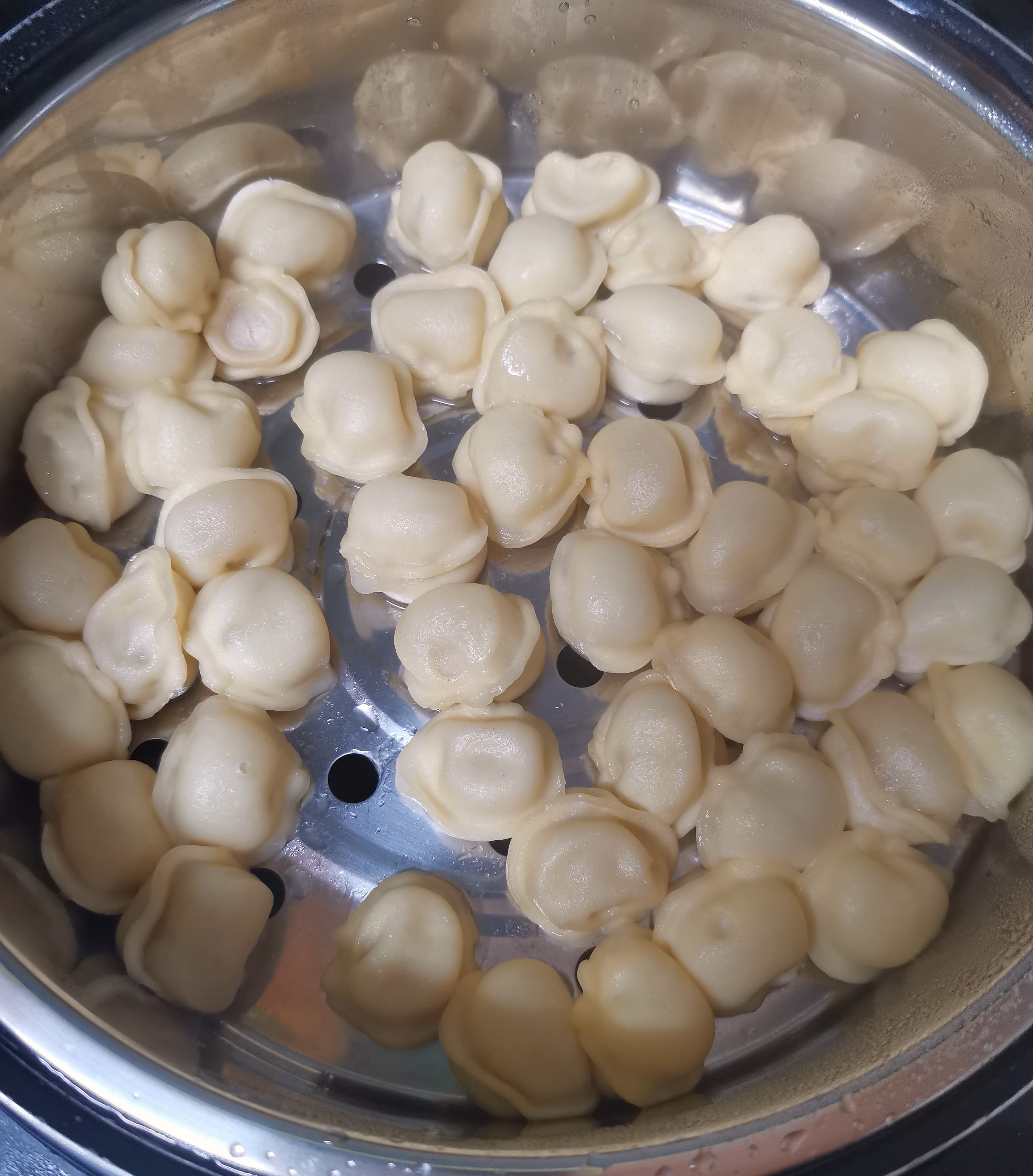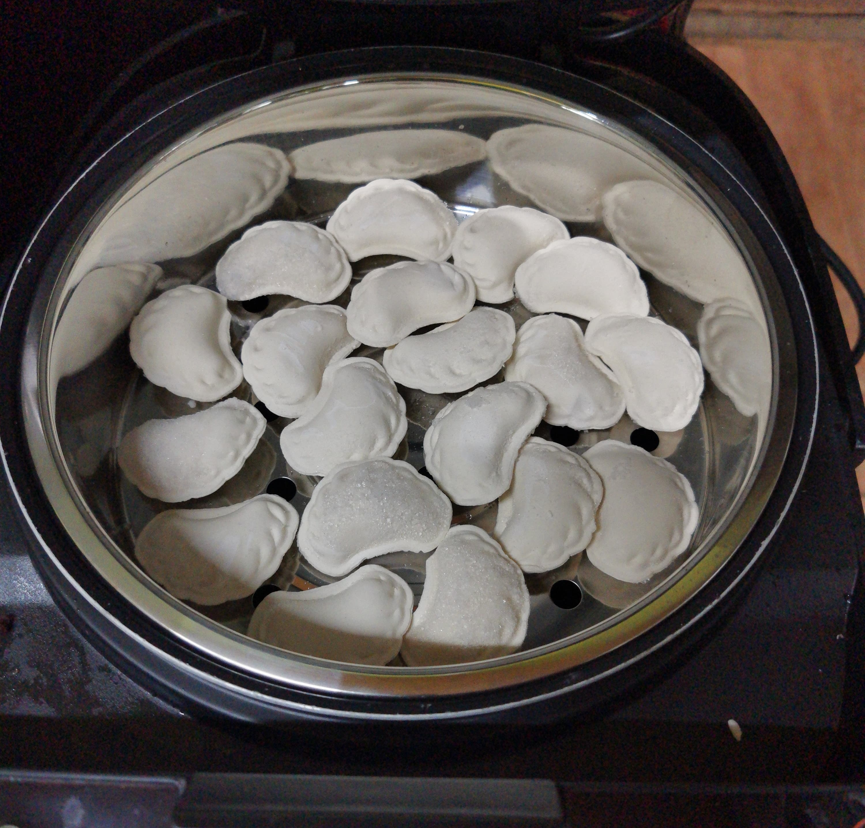 Мы специально взяли вареники с творогом из нижнего ценового сегмента. Такие вареники при варке в воде всегда разваливаются и получается творожно-пшеничный клейстер. Сейчас мы решили испытать возможности нашей мультиварки и приготовить их на пару́.