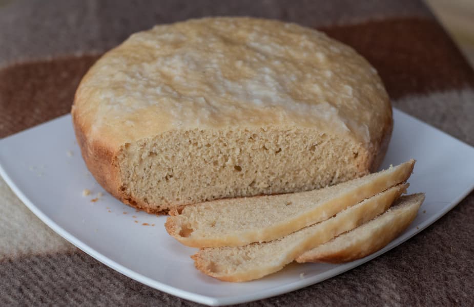По этому же рецепту мы сделали потом хлеб в хлебопечке, там качество получилось несколько выше. Но все же, несмотря на плотную текстуру, мы использовали наш пшеничный хлеб для бутербродов с вареньем.