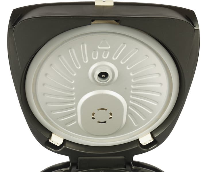 Внутри прибора находится нагревательный элемент с датчиком температуры. Нагревательный элемент высоко поднят над дном корпуса, это удобно при очистке прибора от случайно попавших в него кусочков пищи или других предметов.