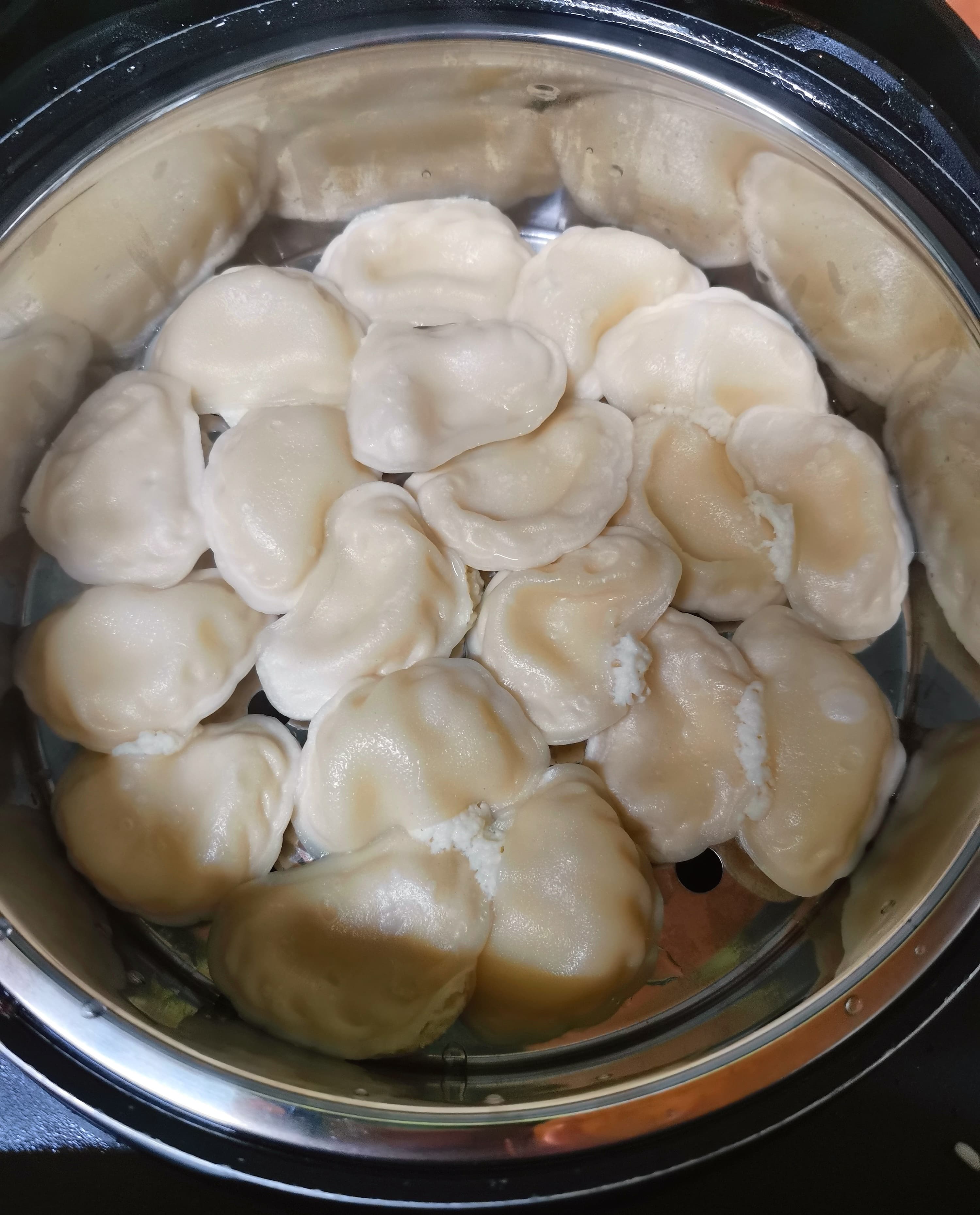Готовили на пару́ в течении 20 минут. За это время фарш прекрасно приготовился, а тесто стало очень приятной упругой консистенции.