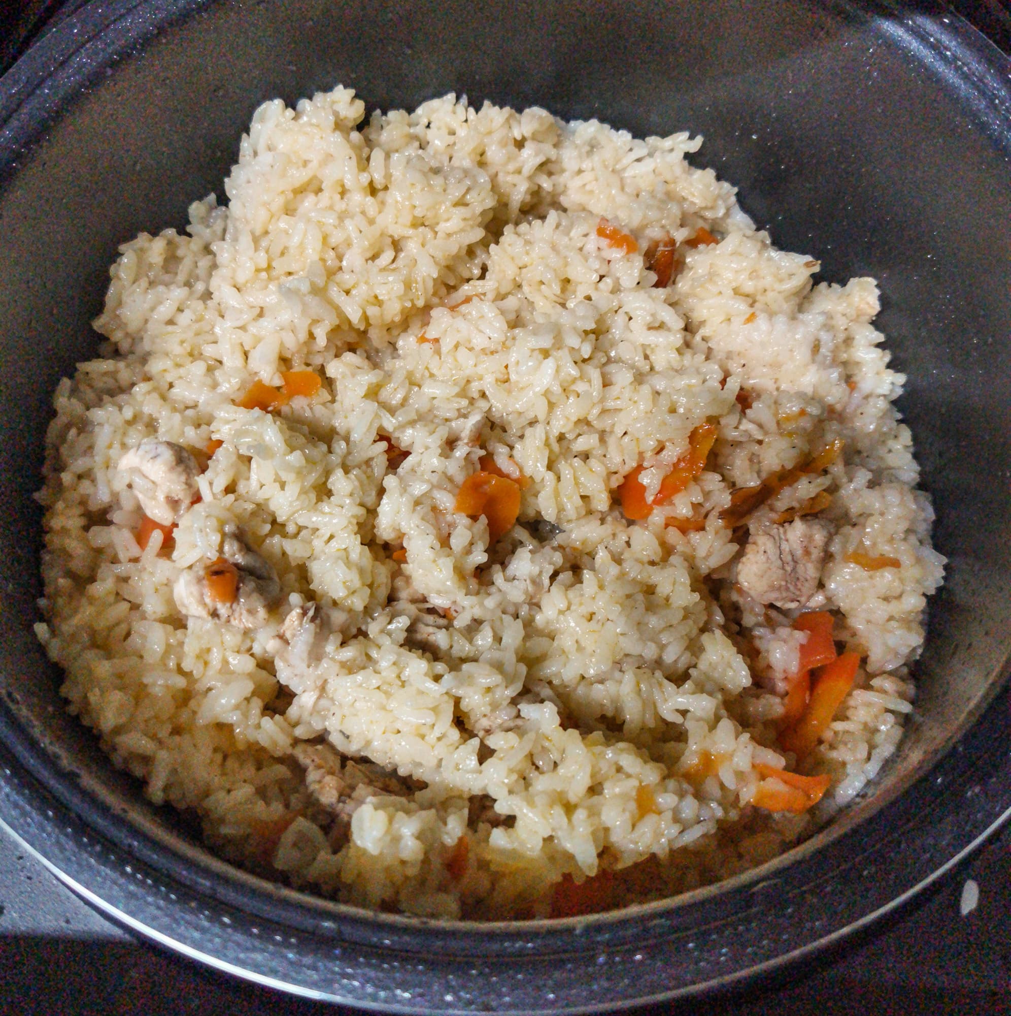 Через 45 минут наш плов был готов. Мы дали ему постоять на подогреве еще 10 минут и подали на стол.