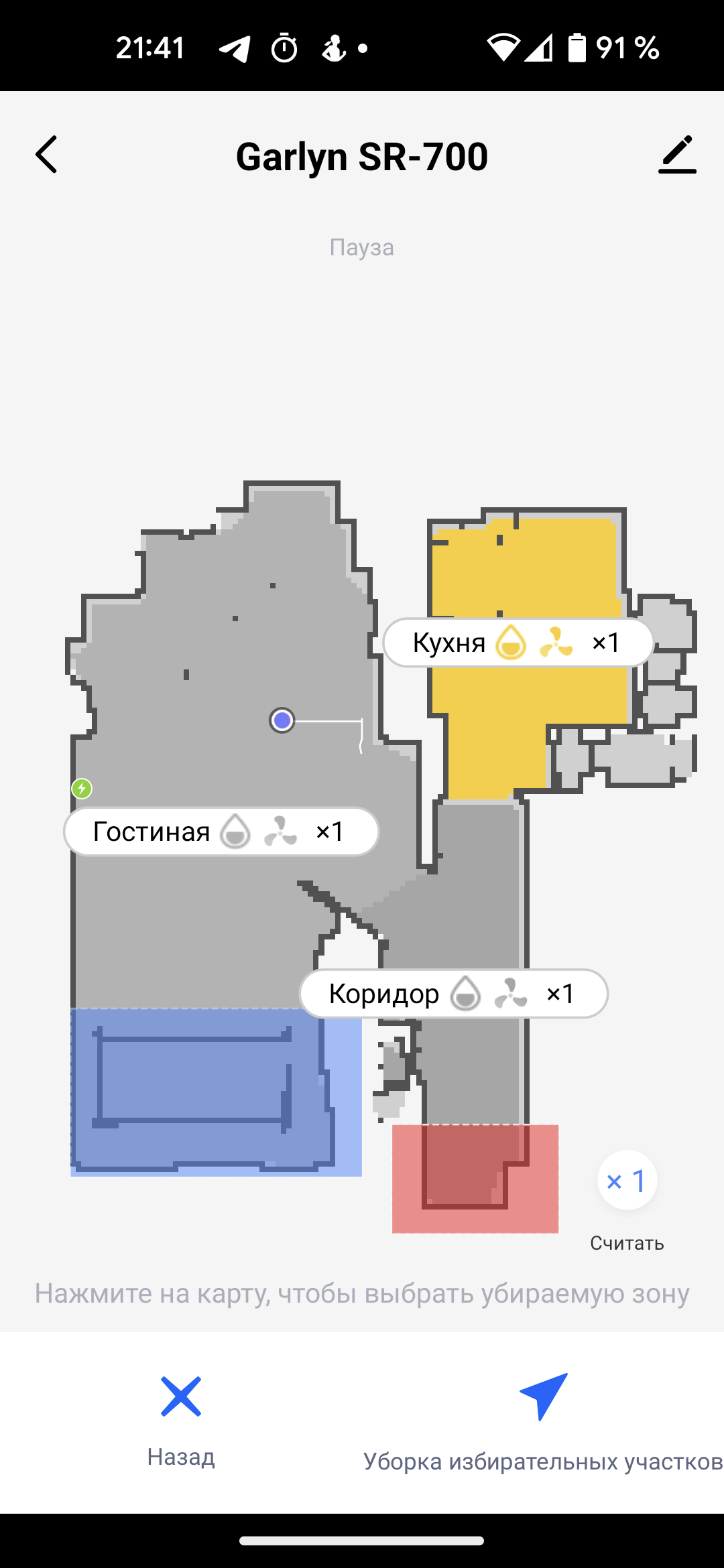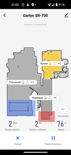 Все помещения квартиры или дома определяются автоматически и маркируются разными цветами. Но если планировка слишком сложна, устройство может спасовать. Тогда у пользователя есть возможность вручную указать границы, объединяя или разделяя созданные прибором зоны, переименовать помещения и указать запретные для сухой или влажной уборки участки.