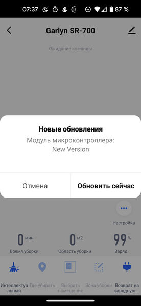 После успешного соединения приложение предлагает проверить наличие свежей микропрограммы для пылесоса и обновить его.