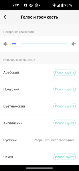 Количество голосовых пакетов, поддерживаемых роботом, впечатляет: их целых двенадцать. По умолчанию установлен русский — на нем прибор говорит приятным мужским голосом без акцента. Обещанной на упаковке возможности записи собственных сообщений мы в приложении не обнаружили.