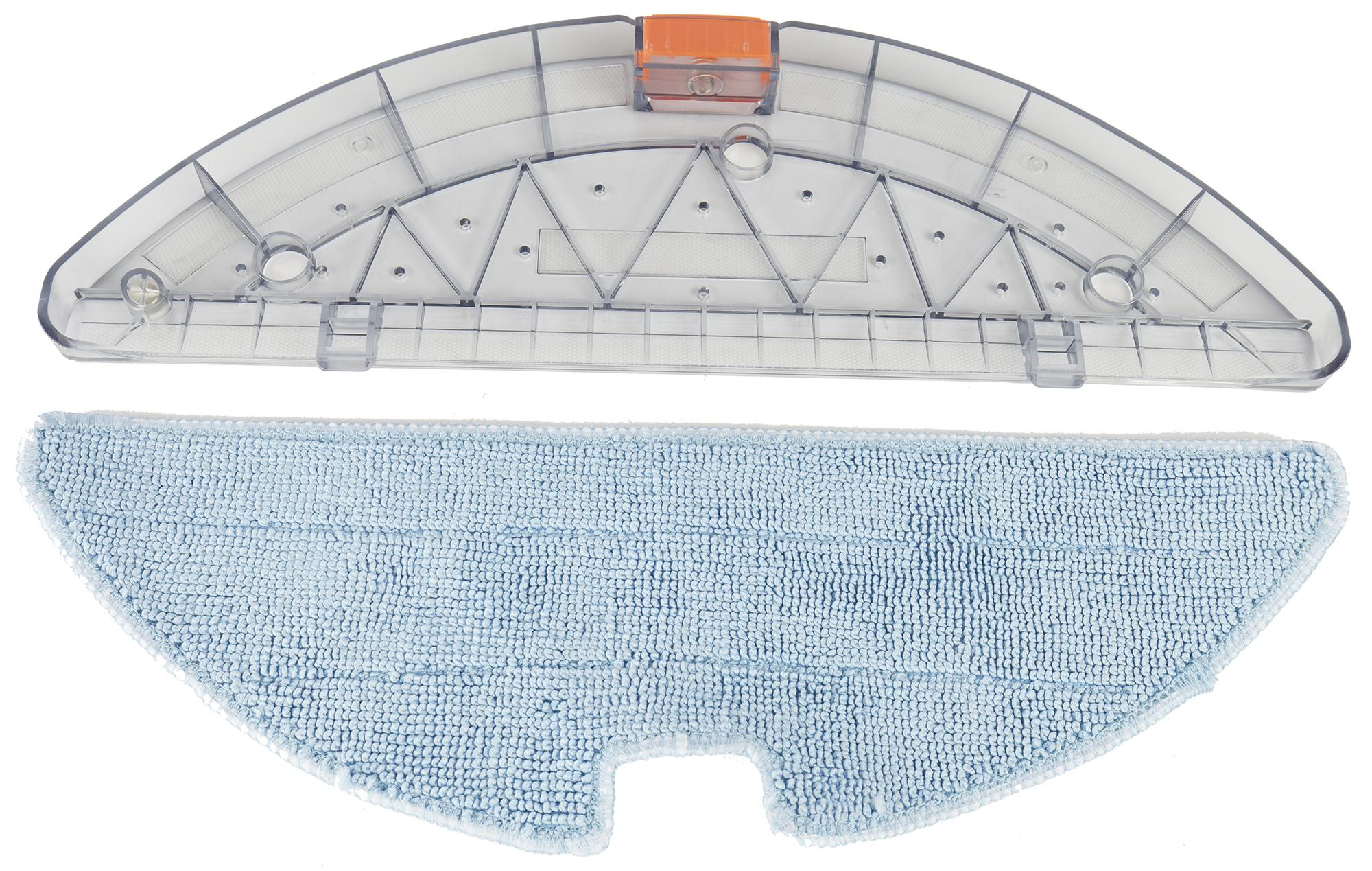 Съемная рамка для влажной уборки прикрепляется к нижней части контейнера и держится на защелке оранжевого цвета. Вода из бака увлажняет D-образную салфетку через три отверстия.