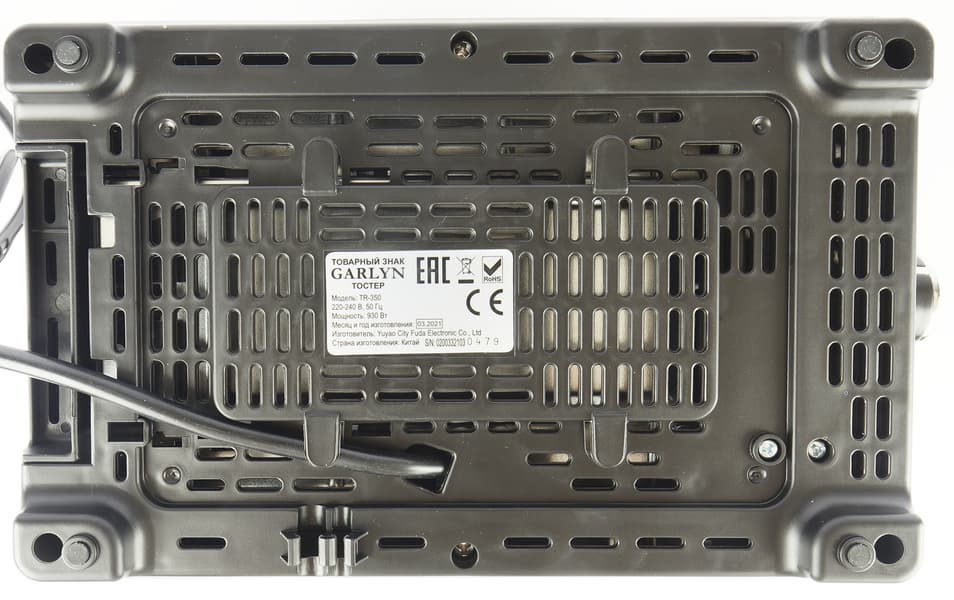 Главное отличие этой модели от первого тостера — материал боковых панелей. У Garlyn TR-350 они, как и прочие части корпуса, выполнены из матовой нержавеющей стали.