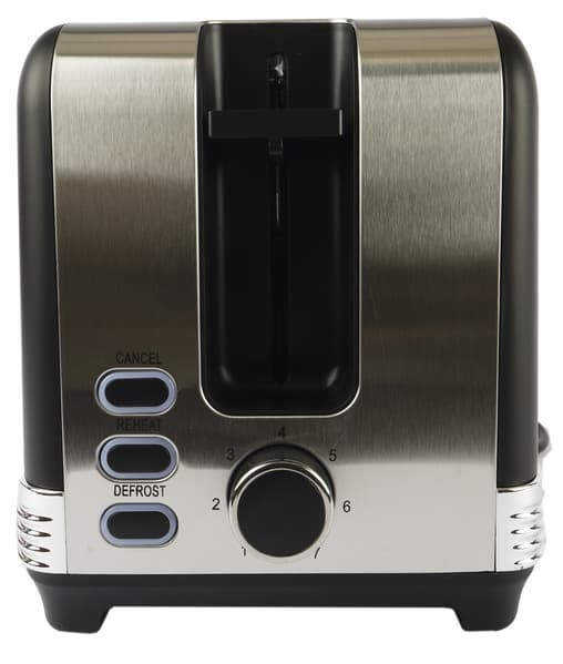 Перед нами — вполне традиционный электрический тостер классической компоновки: два слота для ломтиков хлеба, полуавтоматическое управление подъемными корзинами, регулировка уровня прожарки и кнопки дополнительных функций.