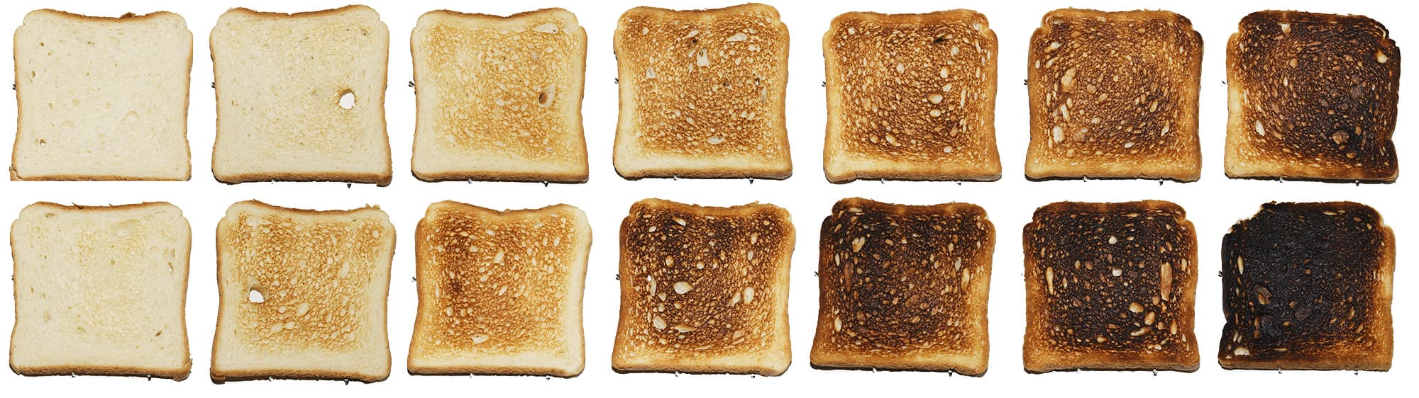 В ходе тестовой эксплуатации мы проверили всю линейку степеней прожарки для белого тостового хлеба, но не забыли и про дополнительные режимы: разморозки и подогрева.