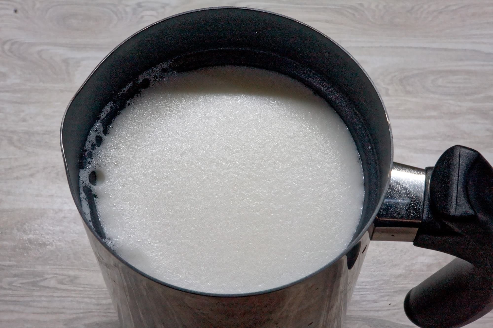 Для этого теста мы взяли 115 мл молока из холодильника, налили его во взбиватель, после чего запустили его в обычном режиме (одно нажатие кнопки).