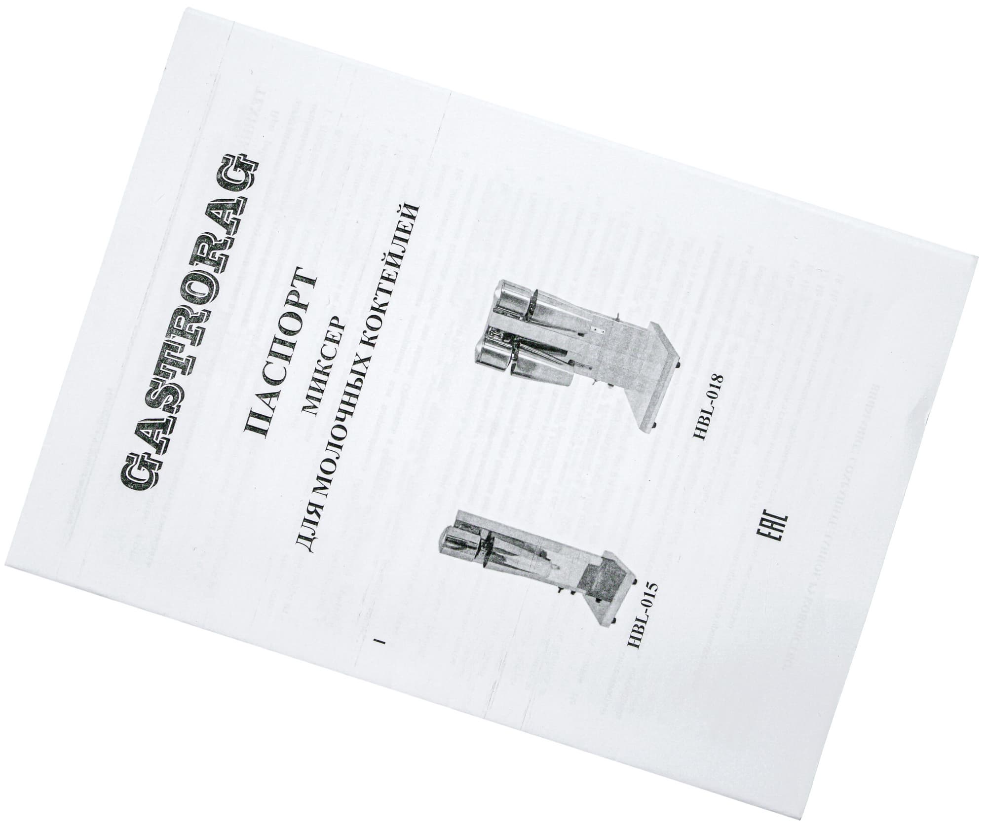 Руководство пользователя составлено сразу для двух моделей: нашей Gastrorag HBL-015 и HBL-018 — похожей, но рассчитанной на два стакана. Документ представляет собой лист формата А4, сложенный вдвое.