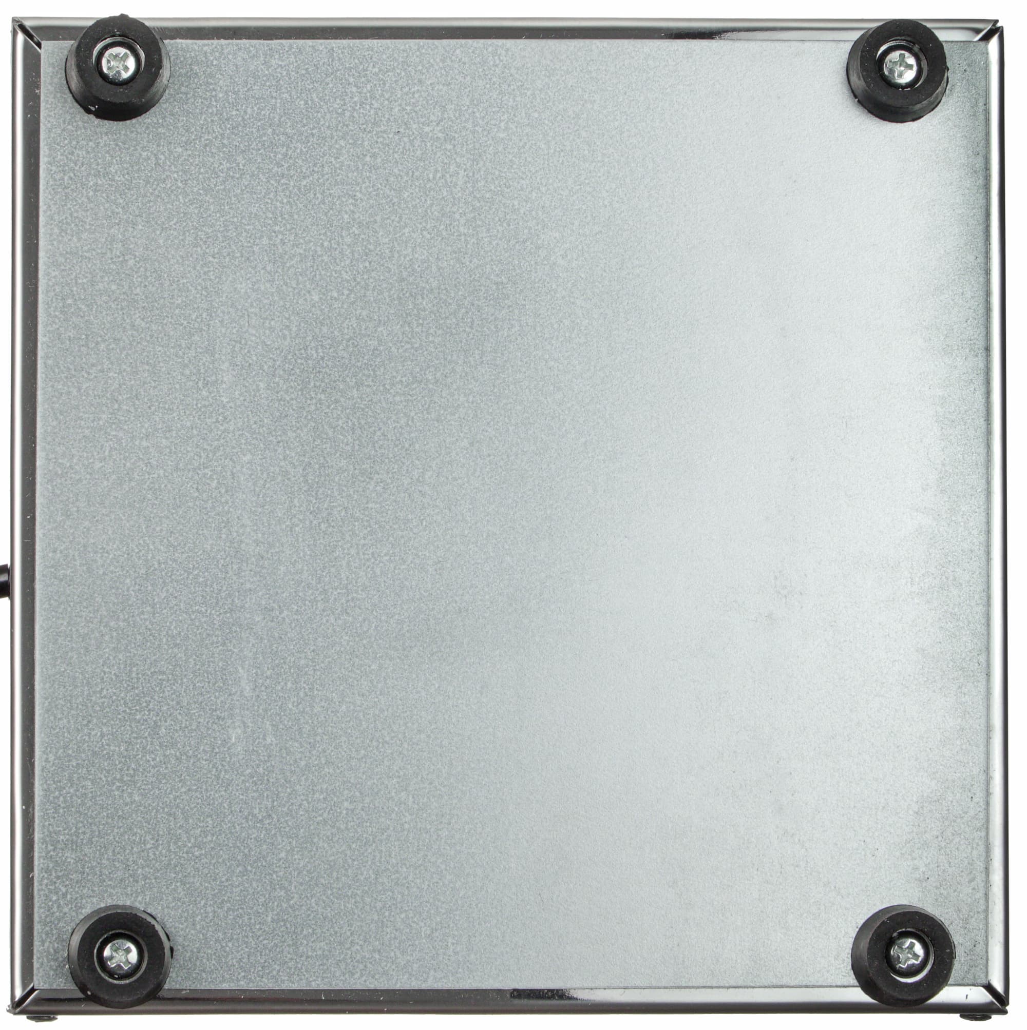 Квадратное основание опирается на четыре резиновые ножки, препятствующие скольжению. Опоры и тумблер включения — единственные неметаллические детали миксера.