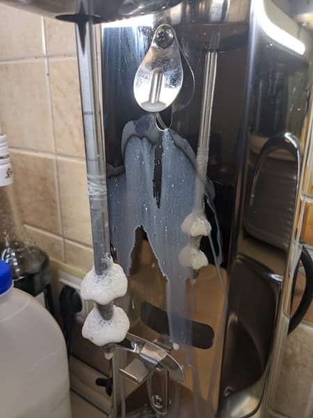 На шпинделе миксера после приготовления коктейля остается заметное количество молочной пены. Стекая с мешалки, остатки смеси капают на полированное основание: поддона для неизбежных капель производитель, к сожалению, не предусмотрел.