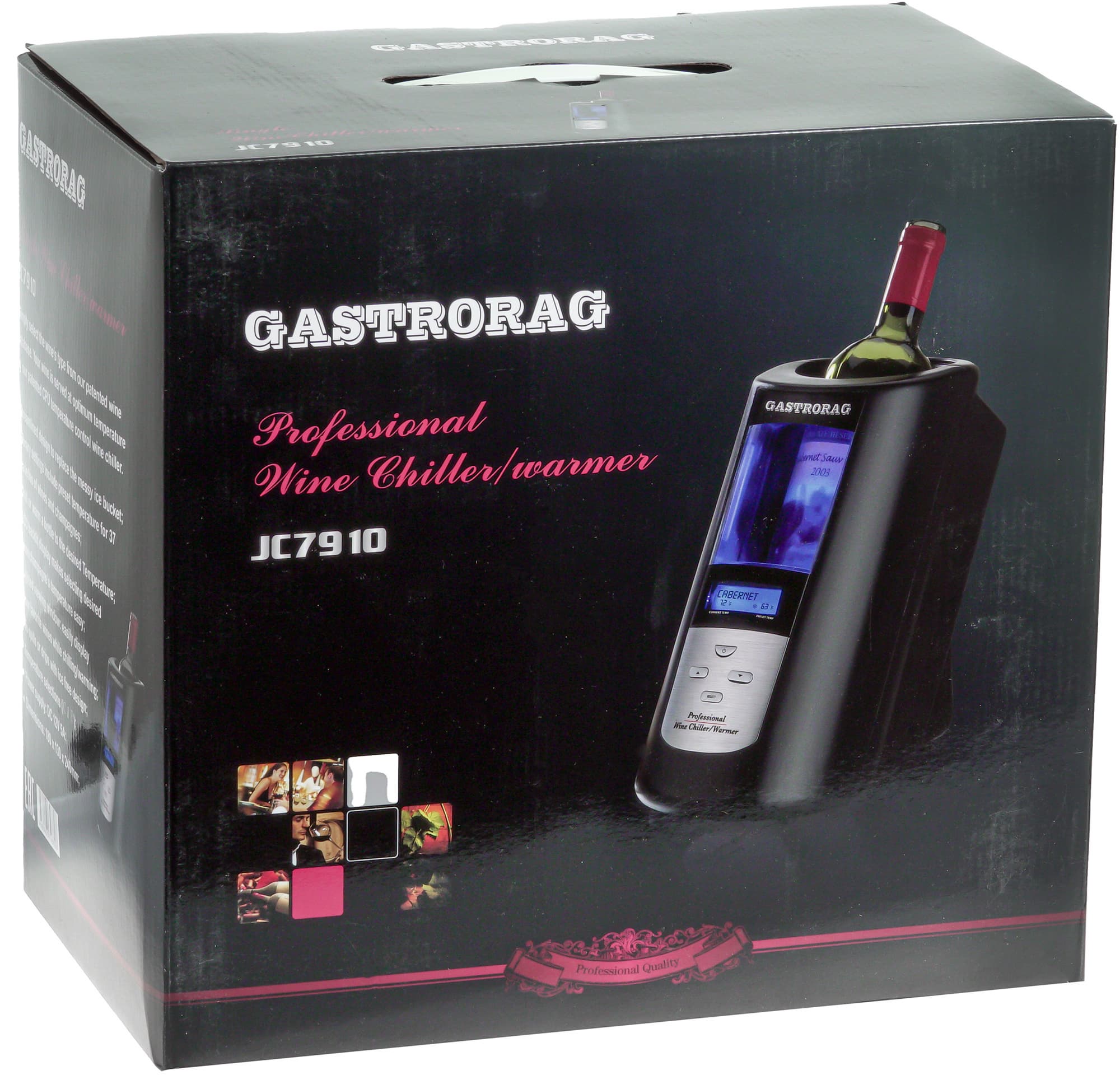 Gastrorag JC8611 имеет простое управление и три температурных режима: для красного, белого и игристого вина. Gastrorag JC7910 — прибор чуть более сложный: у него есть смотровое окошко с подсветкой, жидкокристаллический дисплей и возможность установить нужную температуру с точностью до градуса. Он, кстати, не только охлаждает вино, но, при необходимости, может и подогреть его.
