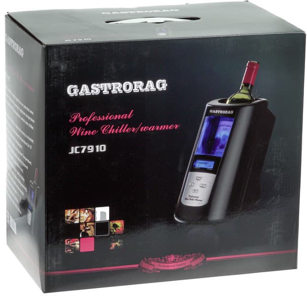 Коробка у этой модели оформлена почти так же, как у предыдущей, только Gastrorag JC7910 на лицевой стороне упаковки охлаждает не игристое, а каберне.