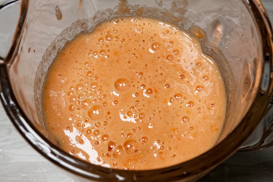 Блендирование шло в ручном режиме, с плавным увеличением скорости. Визуально томаты были измельчены в первые 30 секунд, общая длительность измельчения составила 1 минуту. В итоге мы получили относительно однородную томатную смесь с заметным вкраплением неперемолотых частиц кожуры и семечек.