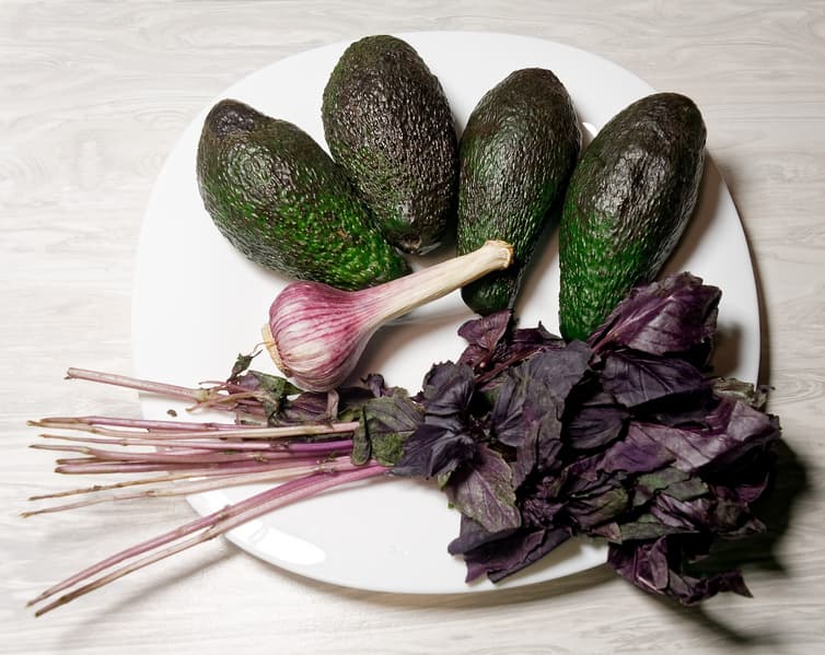 Для приготовления песто мы воспользовались проверенным рецептом. Мы взяли немного чеснока, пучок базилика, оливковое масло, спелые авокадо, немного твердого сыра (который мы предварительно натерли на крупной терке), добавили соль и перец по вкусу.
