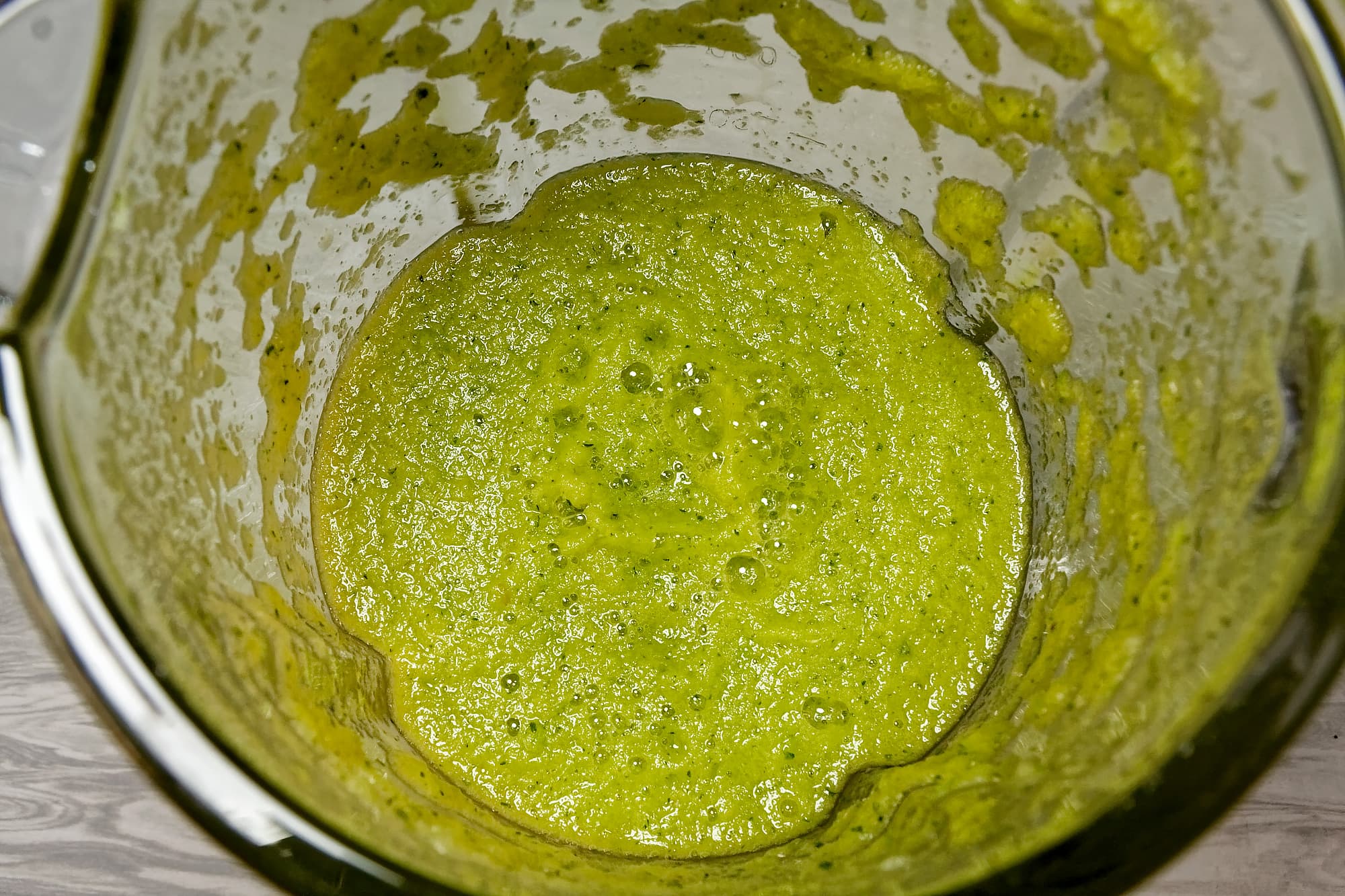 Данная тактика дала желаемый результат: песто получился желаемой консистенции, практически без вкраплений неперемолотых частиц.
