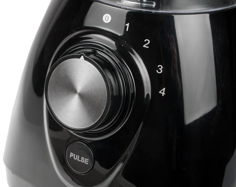 Круговой регулятор с серебристой вставкой обеспечивает понятное управление с переключением скорости от 0 до 4, а под ним расположена кнопка импульсного режима, подписанная Pulse.