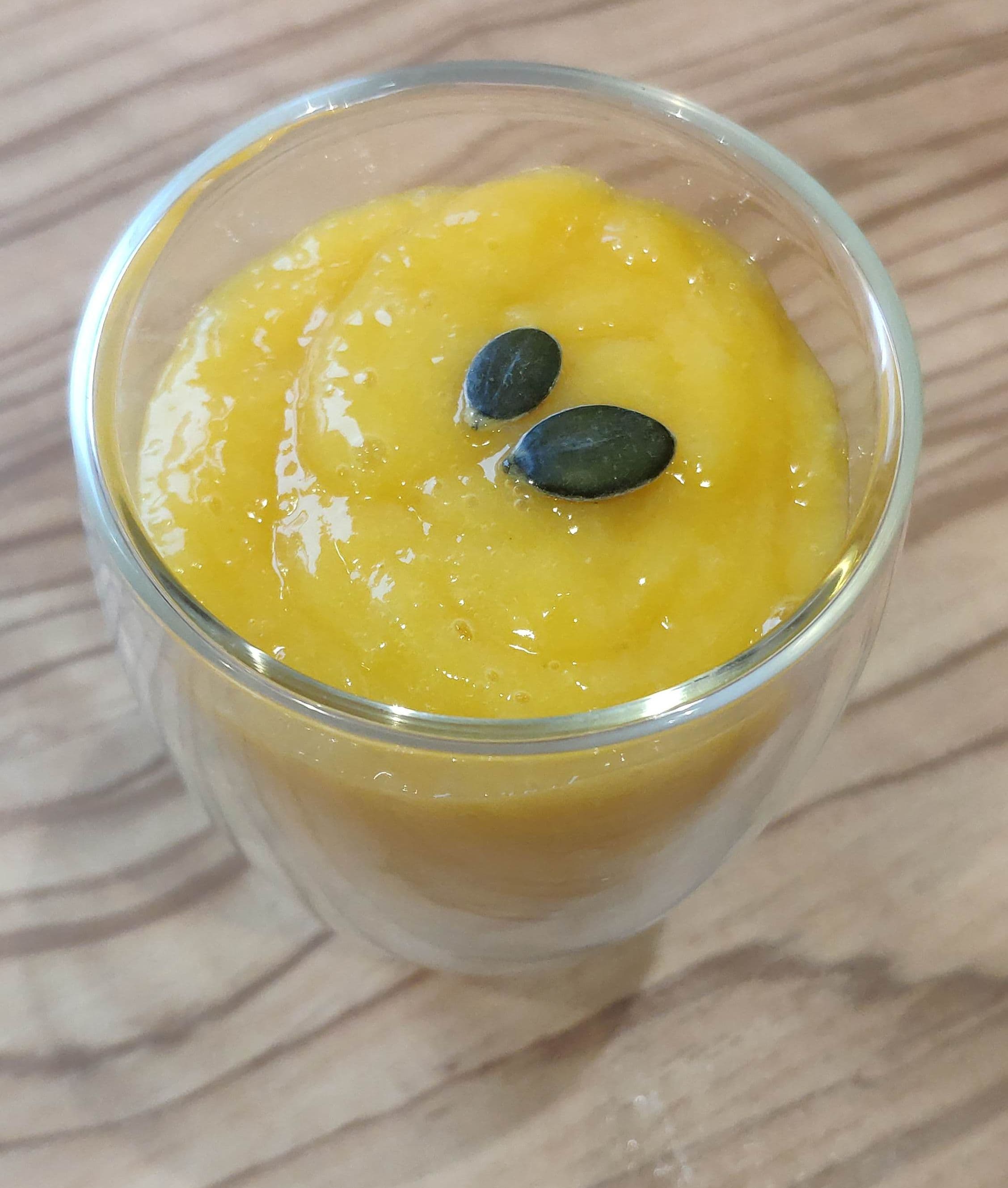 Однако сначала нас постигло разочарование: нож не подхватывал кусочки, и процесс измельчения не двигался. Пришлось добавить два колпачка воды, после чего дело пошло на лад. Полученный смузи был густым, несмотря на воду, и по консистенции напоминал детское пюре: те же нежность и однородность. Даже плотность похожая, хоть сейчас фасуй в пакетики дой-пак. Но мы просто его съели и порадовались наличию спелого манго в магазине и блендера на тестировании.