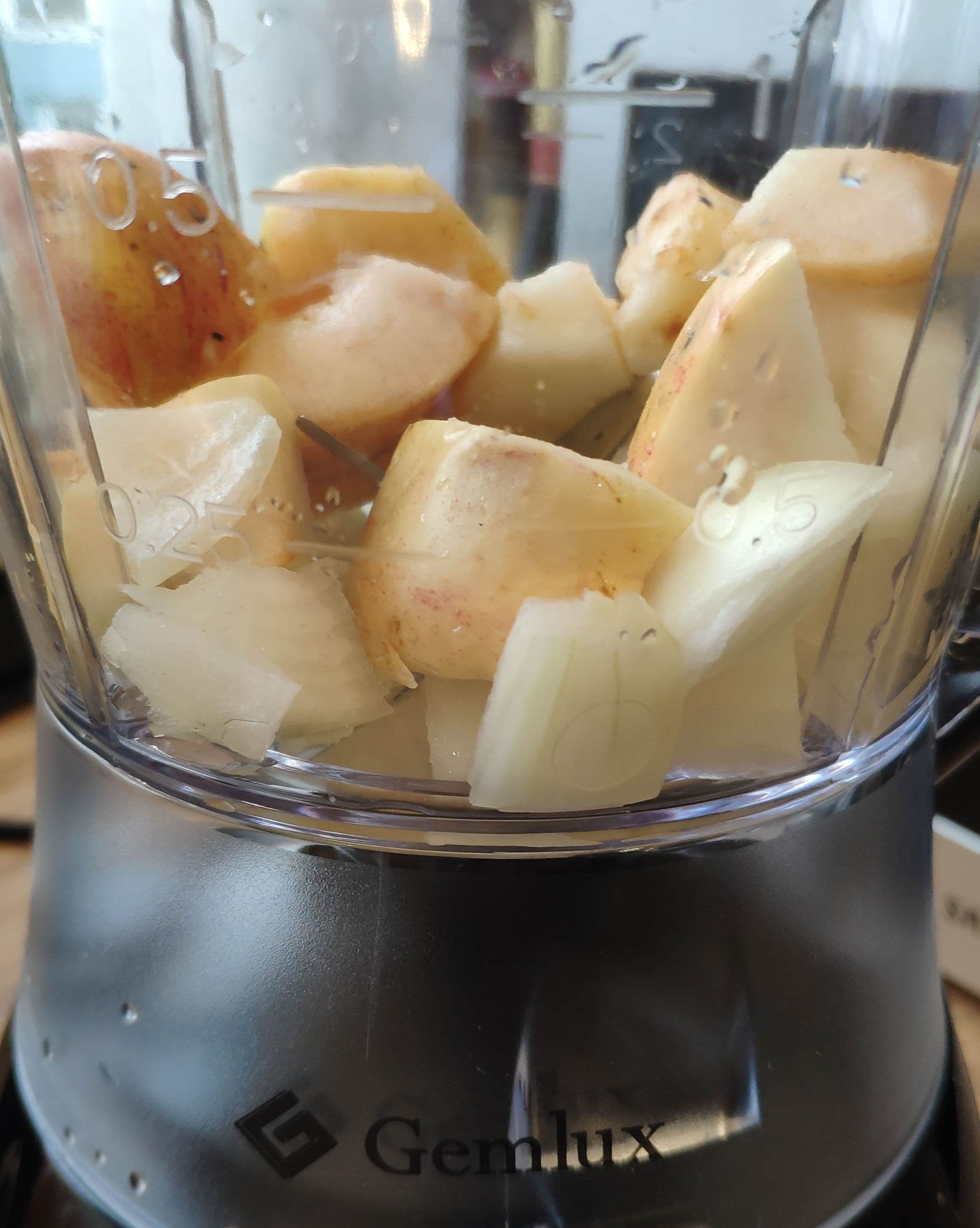 При скупом добавлении воды мы получили 600 мл пюре на выходе, после чего решили, что так можно легко делать абсолютно натуральный вкуснейший напиток, просто увеличивая пропорцию воды.