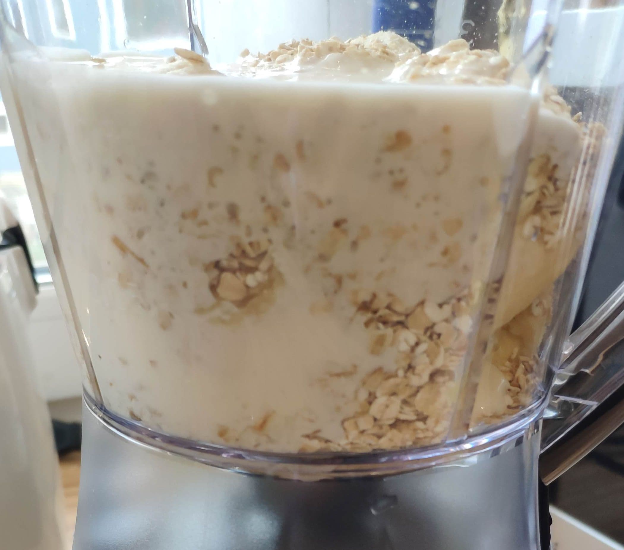 Классический завтрак хипстера, или если нет времени варить кашу, или хочется новых текстур и вкусов. Нам понадобились 100 г ряженки, 50 г овсяных хлопьев среднего помола и 2 банана.
