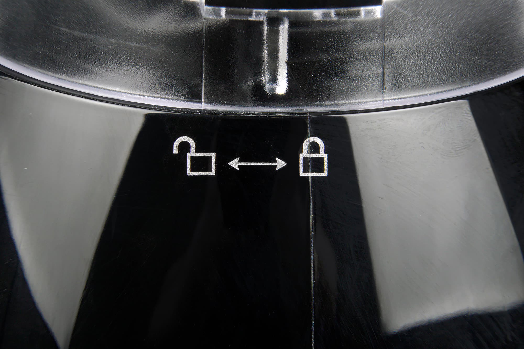 Безопасность реализована на совесть: блендер действительно не запускается, если кувшин не установлен на базу до щелчка, а крышка, соответственно, на кувшин. Однако на достижение правильного положения уходило немало сил — в один момент мы даже подумали, что прибор не включается по другой причине. Но потом приложили всю силу, и тугая защелка наконец сработала. Пока мы воевали с ней, к концу тестов заметили, что краска на основании кувшина частично стерлась, смазав логотип. Здесь хочется посоветовать производителю не брендировать части, которые часто контактируют с чем-либо.