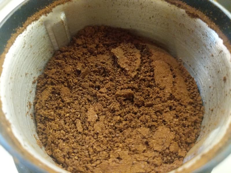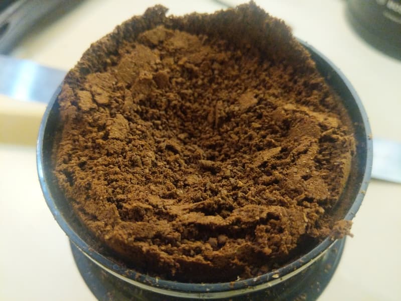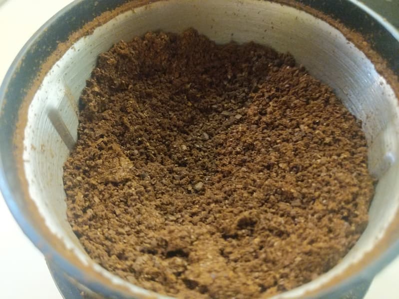 Через 20 секунд помола кофе становится пригоден для использования в капельной кофеварке или френч-прессе. Уже заметны признаки спрессовывания у стенок, так что в процессе имеет смысл постукивать по крышке.