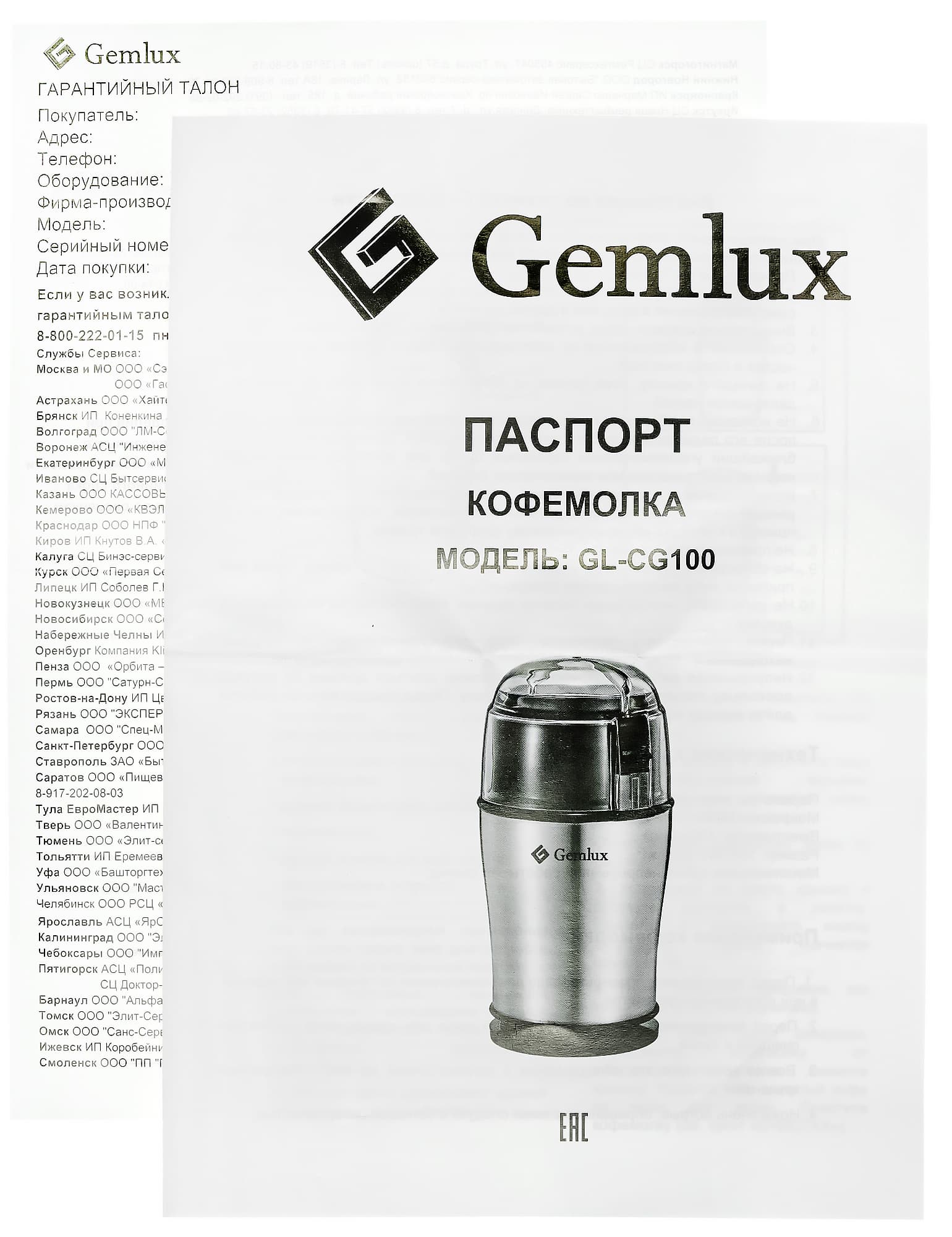 Инструкция напоминает, что Gemlux GL-CG100 обеспечивает измельчение кофе для: