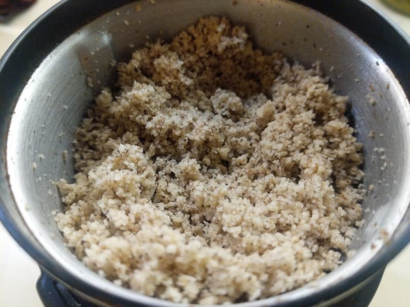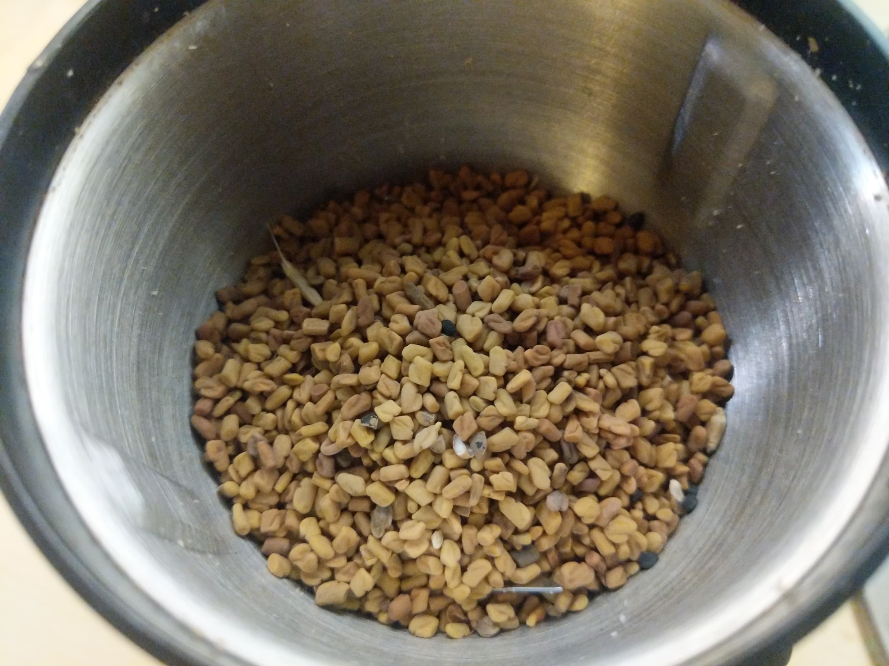 Весьма твердые семена пажитника заставляют повара попотеть при их измельчении в ступке или с помощью ручной мельницы. Мы взяли около 30 граммов продукта и засыпали его в чашу кофемолки.