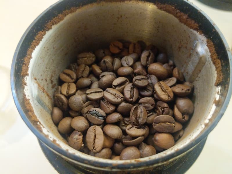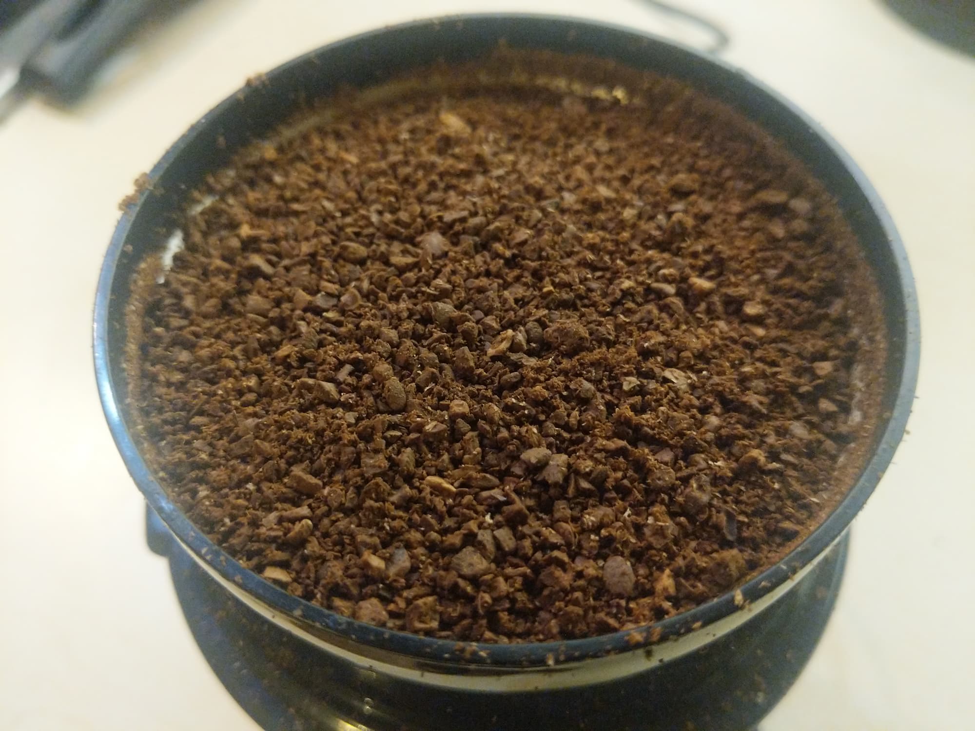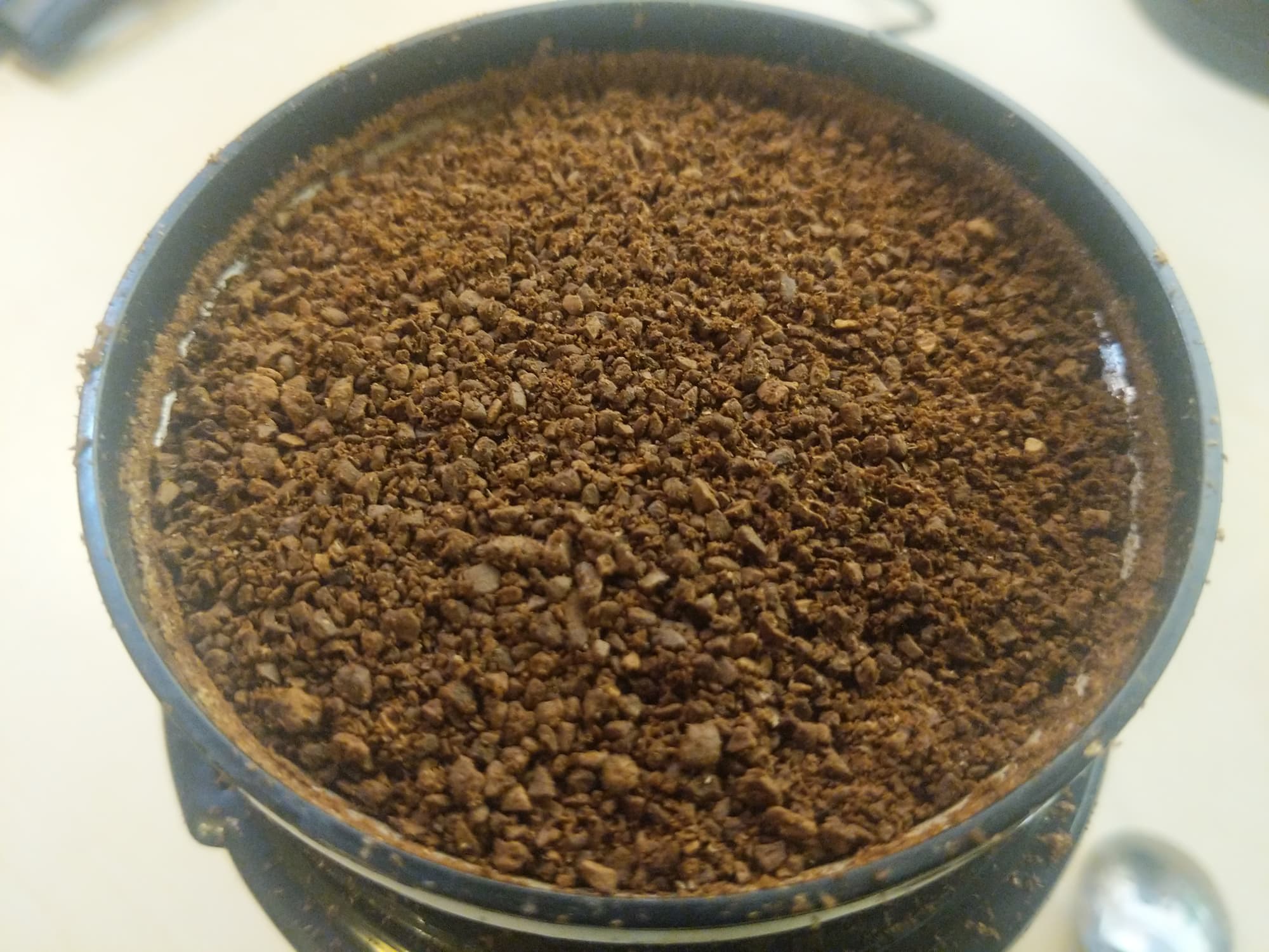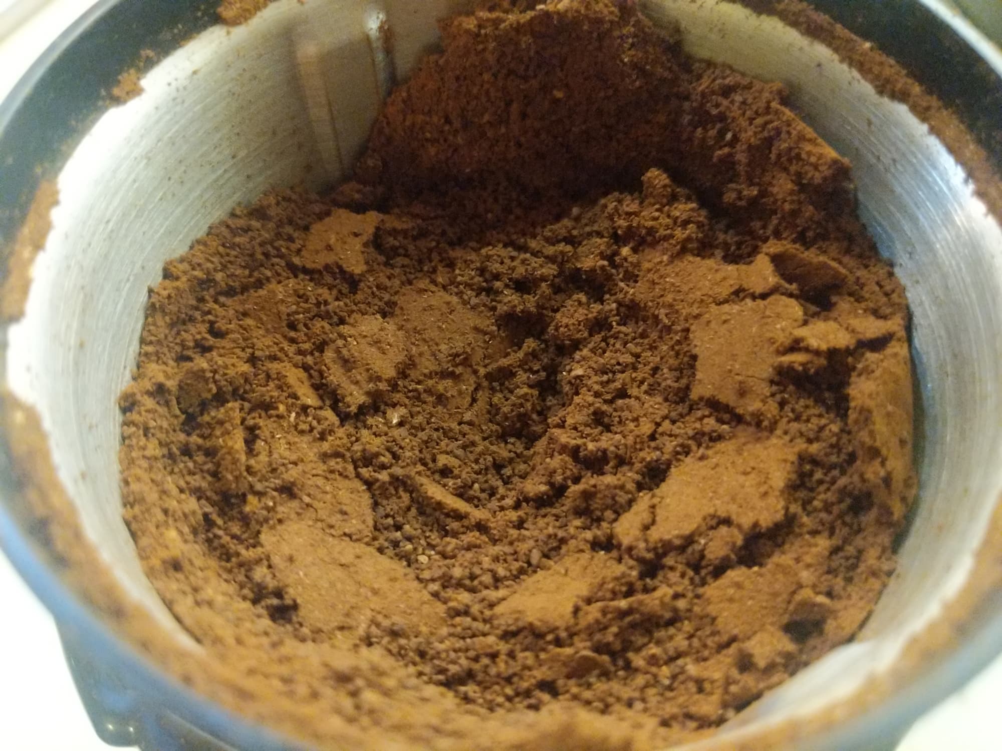 После первых десяти секунд помола дробленые зерна несколько увеличились в объеме: часть кофе просыпалось на стол, когда мы открыли крышку.