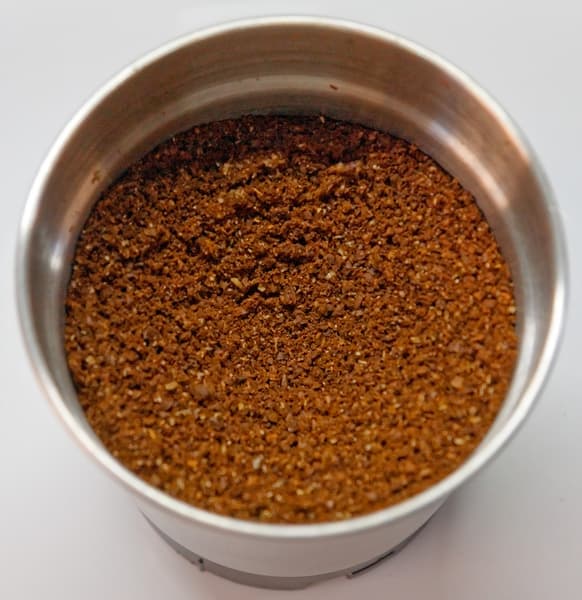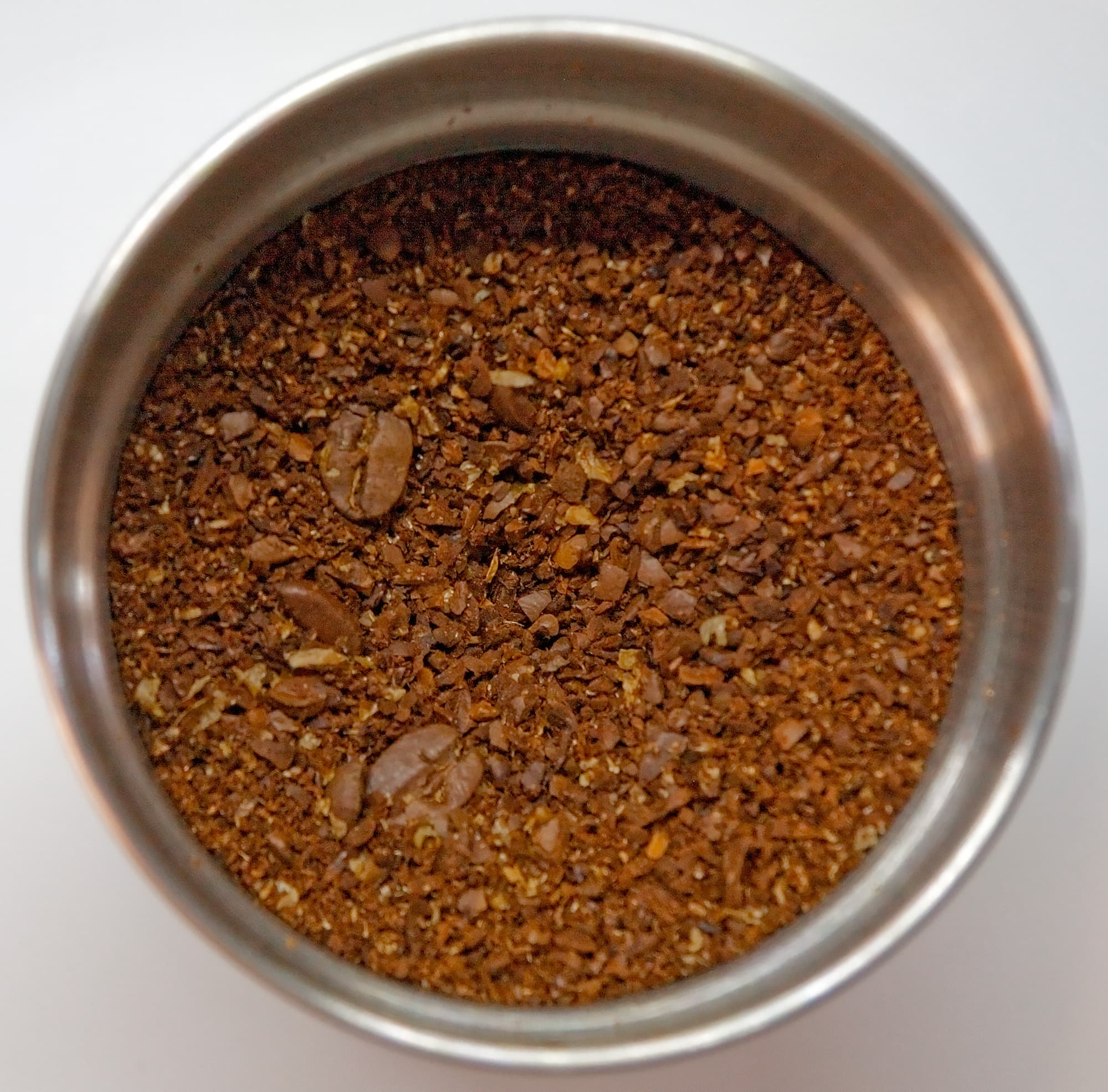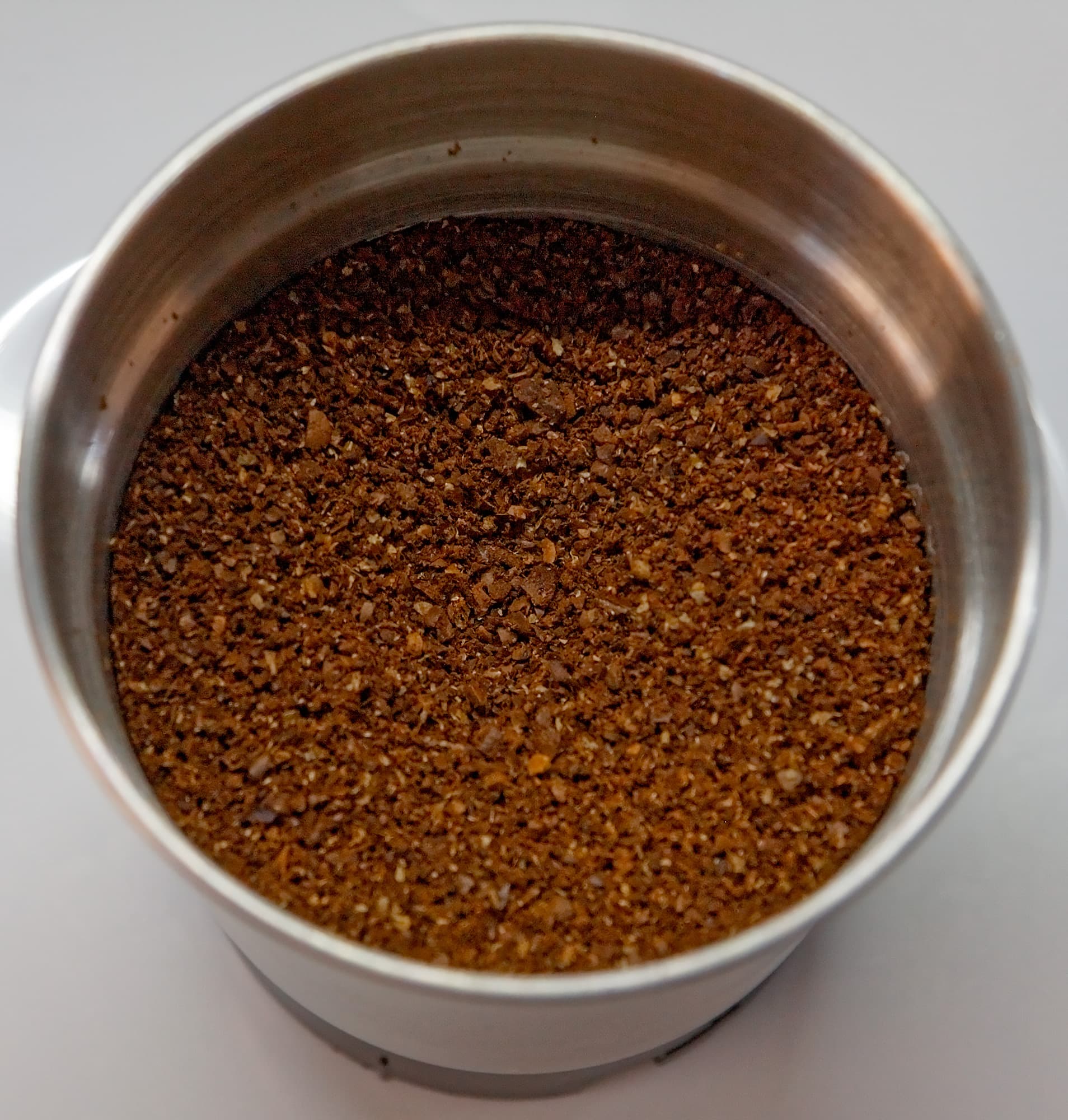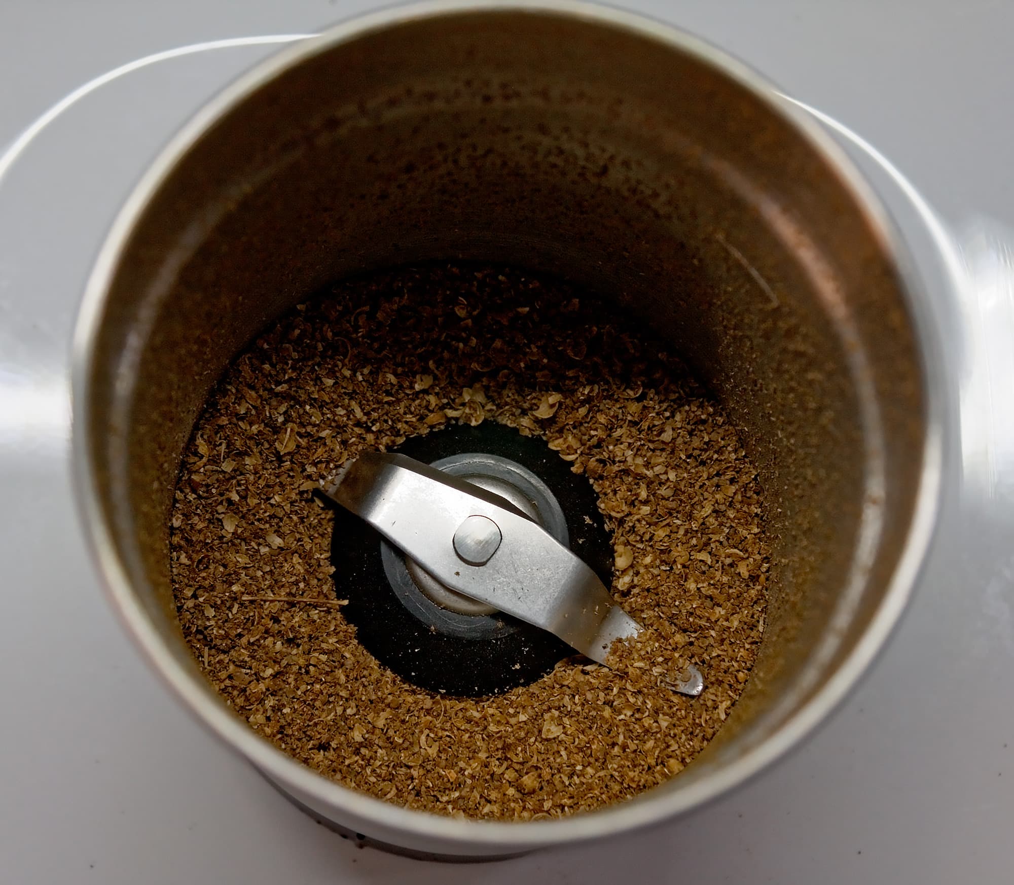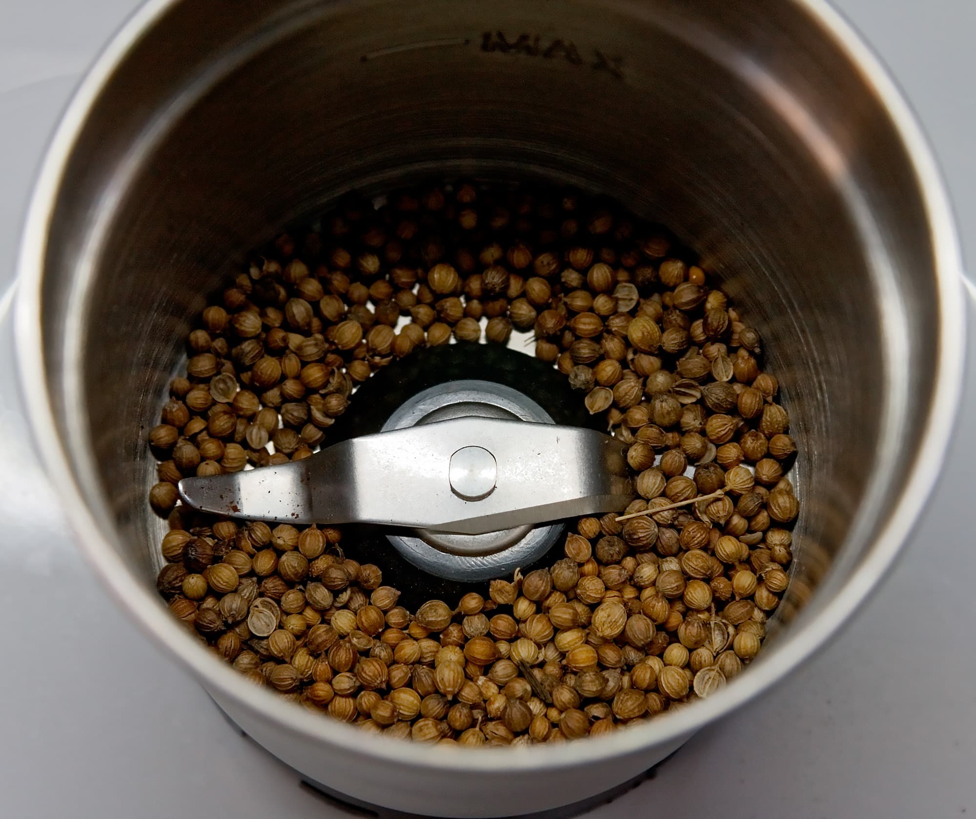 Кориандр измельчался как положено — чем дольше мы удерживали кнопку кофемолки — тем более мелкой получалась субстанция в чаше.