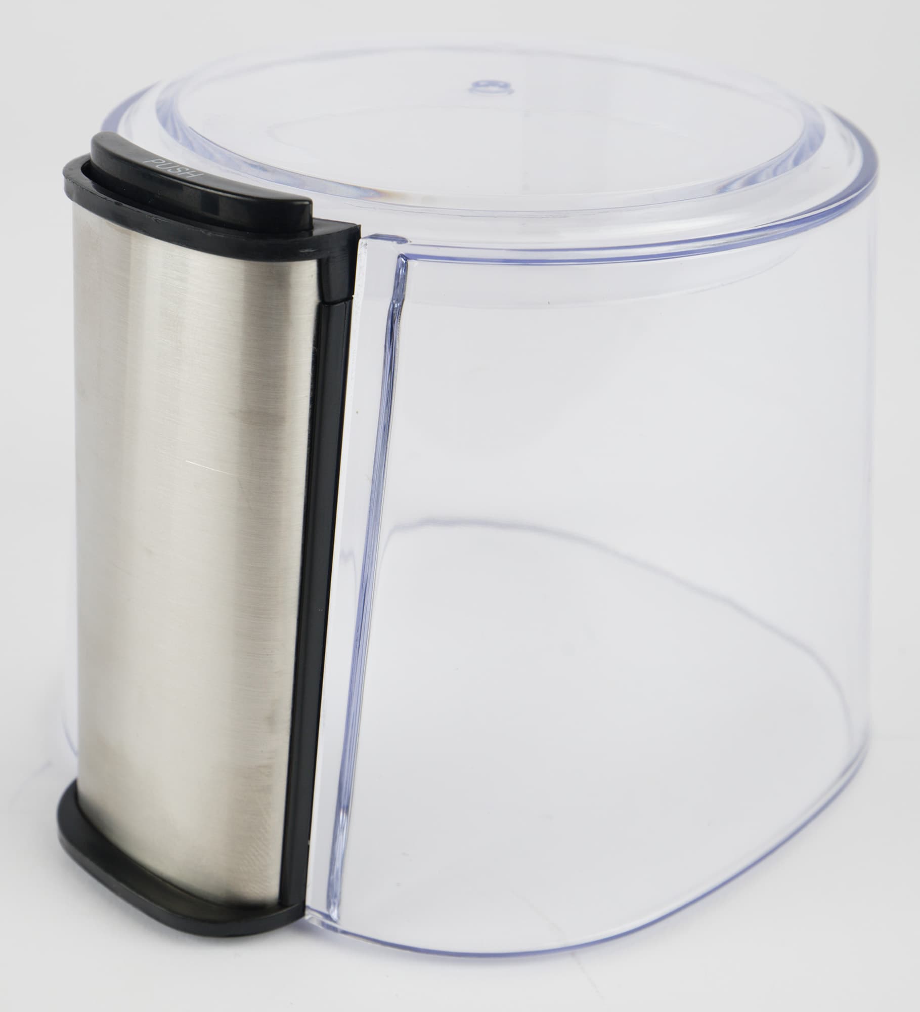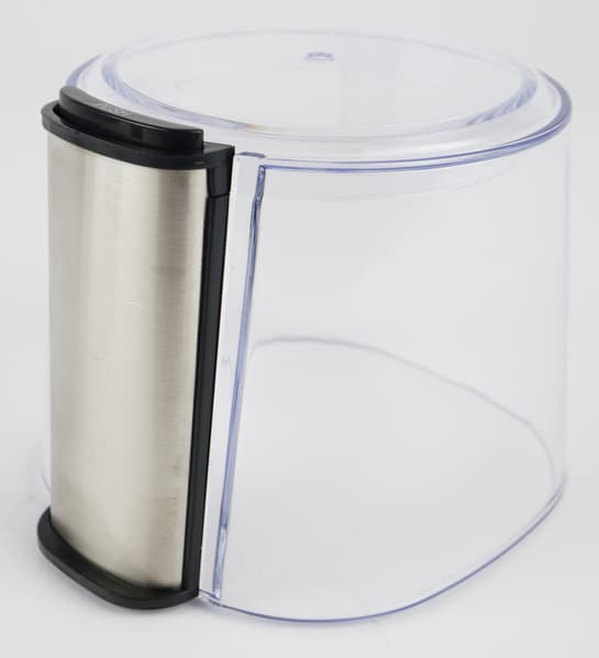 Чаша закрывается прозрачной пластиковой крышкой, через которую отлично видно содержимое. В передней части крышки находится кнопка, с помощью которой осуществляется включение устройства.