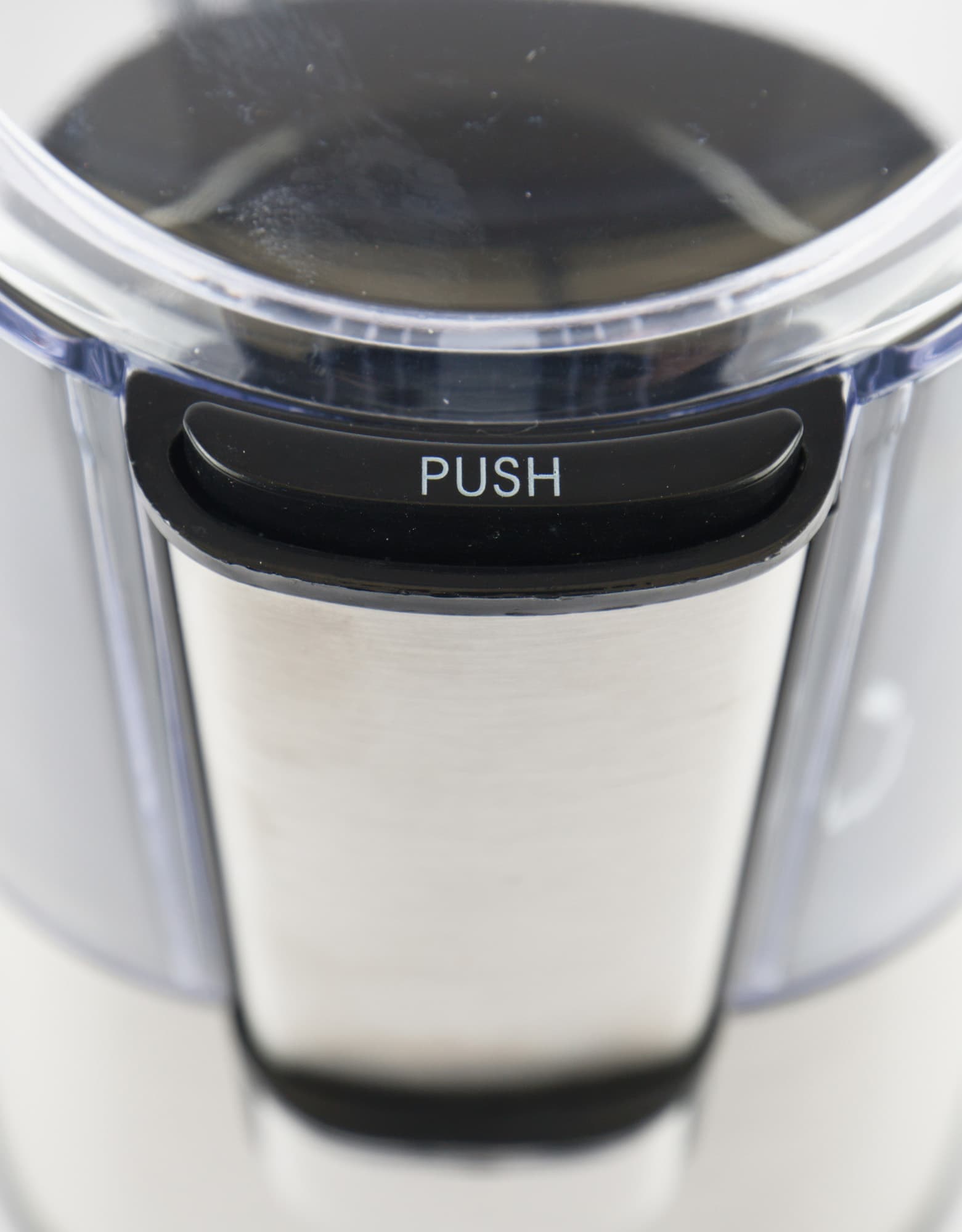 Стандартный сценарий использования кофемолки следующий — снимаем прозрачную крышку, насыпаем нужное количество кофейных зерен (не более 60 граммов), помещаем крышку кофемолки на корпус, закрыв его, нажимаем кнопку Push и держим ее до желаемой степени измельчения зерен.