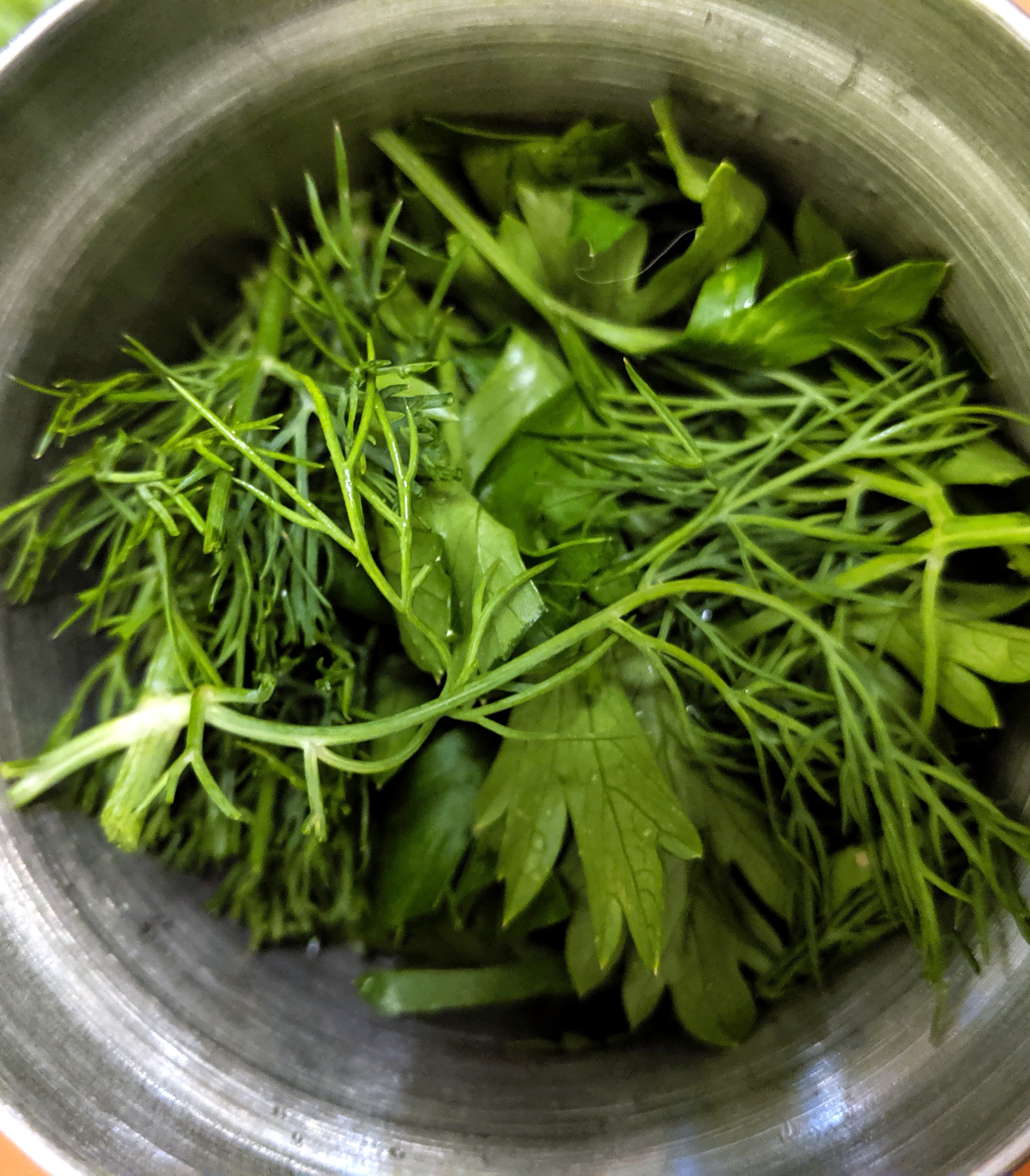 Молотую зелень можно высушить, заморозить в формочках для льда, добавить в любое блюдо (суп, салат или соус от ее присутствия только выиграют). Совет: если вы готовите суп, то ополосните чашу с остатками зелени небольшим (столовая ложка) количеством кипяченой воды и добавьте в бульон.