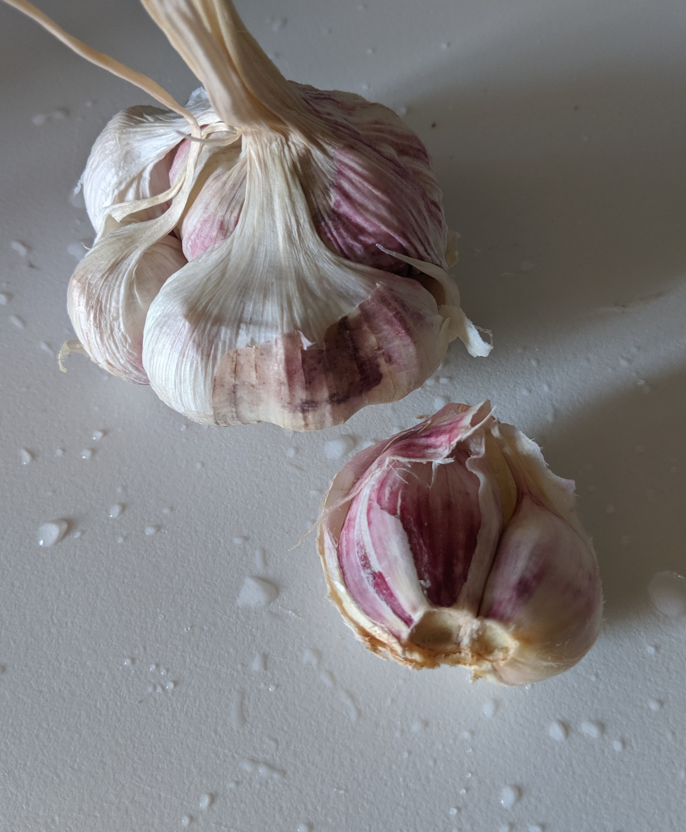 Два зубчика чеснока за пять секунд стали чесночной крошкой, ровным слоем распределенной по всей чаше. С помощью чайной ложки мы вынули измельченный чеснок оттуда практически полностью, но для более быстрого результата, конечно, надо молоть чеснока побольше.