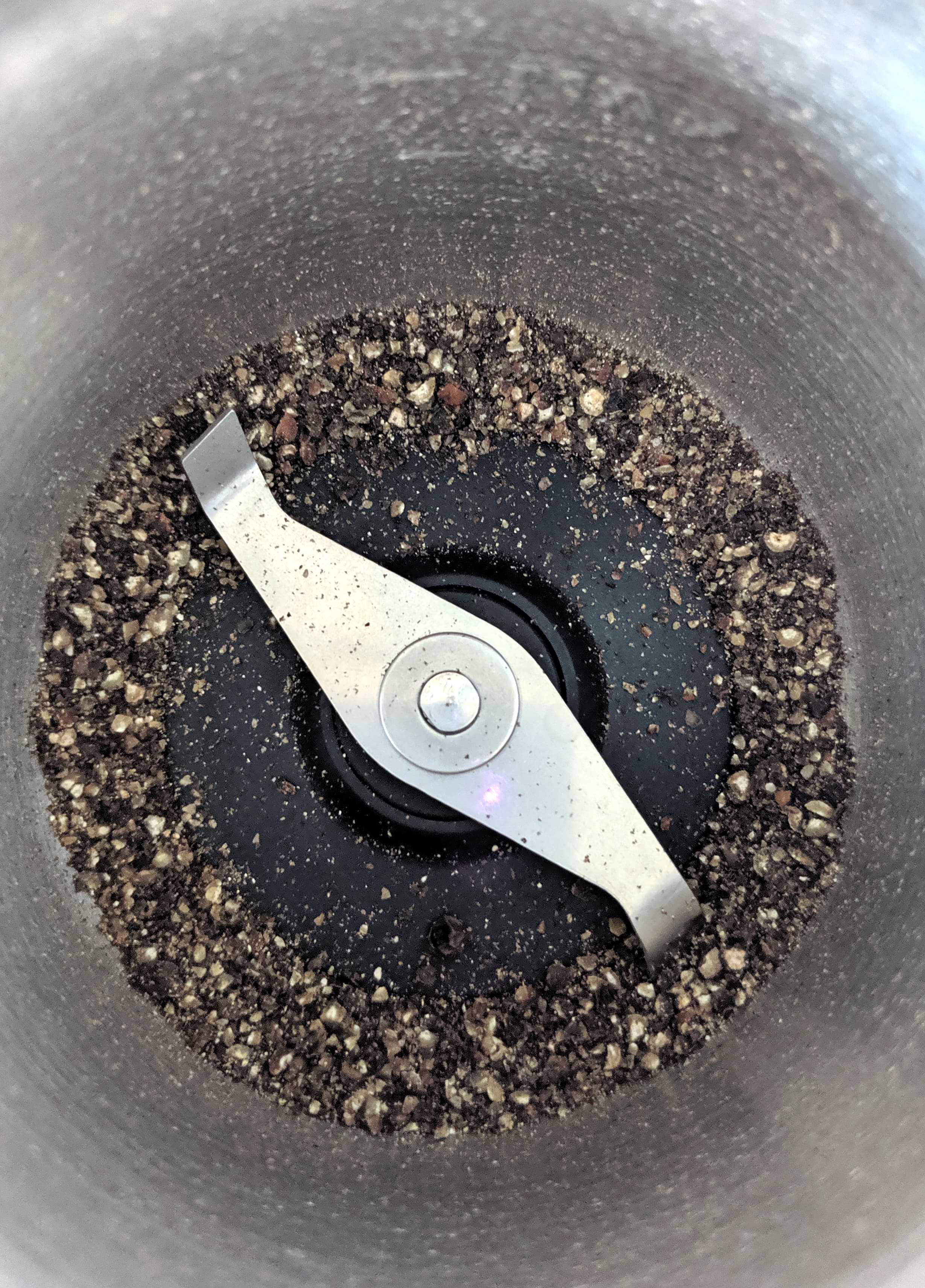 Дальнейшее перемалывание в течение очередных 10 секунд сделало из кофе пыль, годную для заваривания кипятком в чашке.