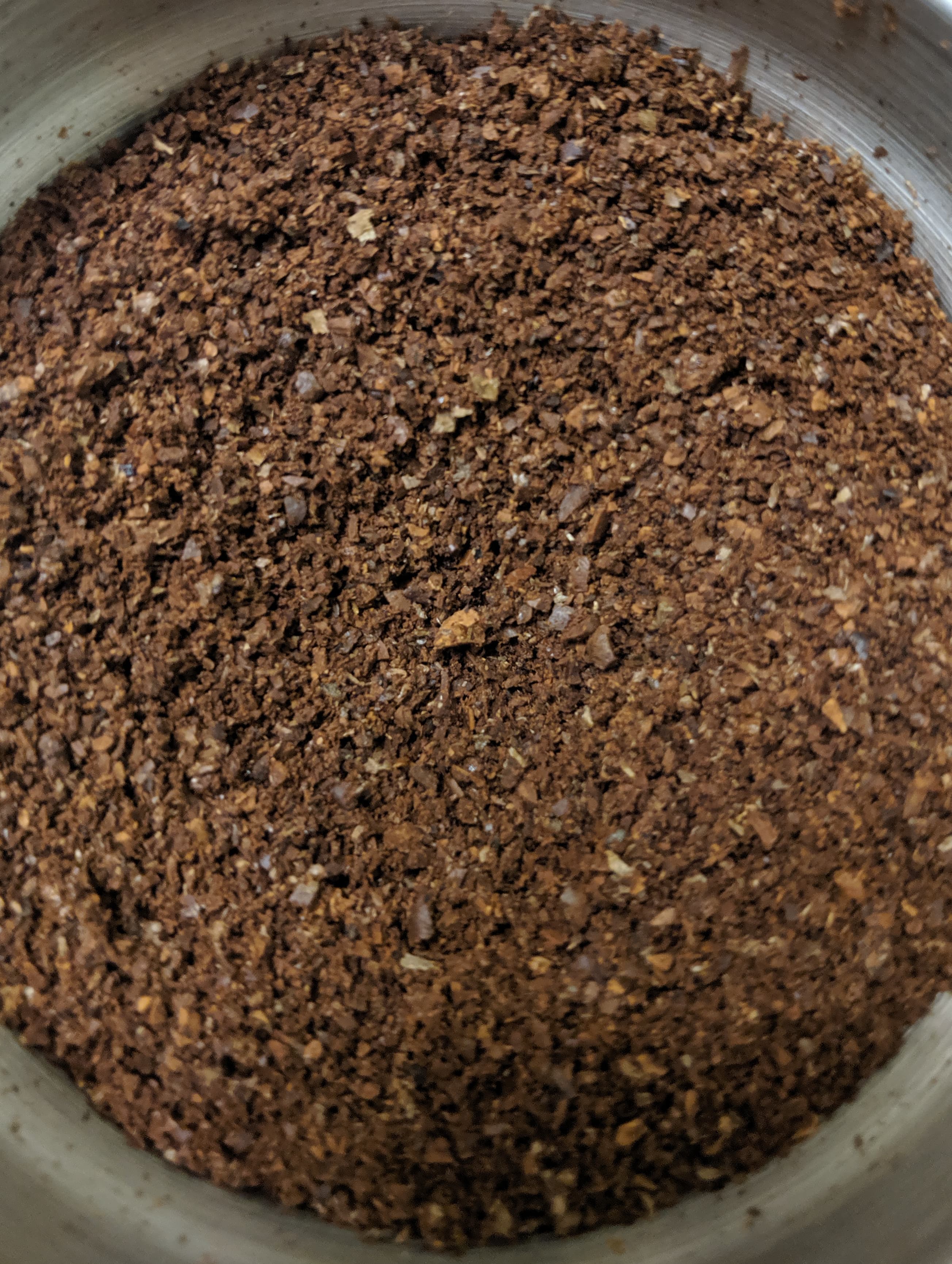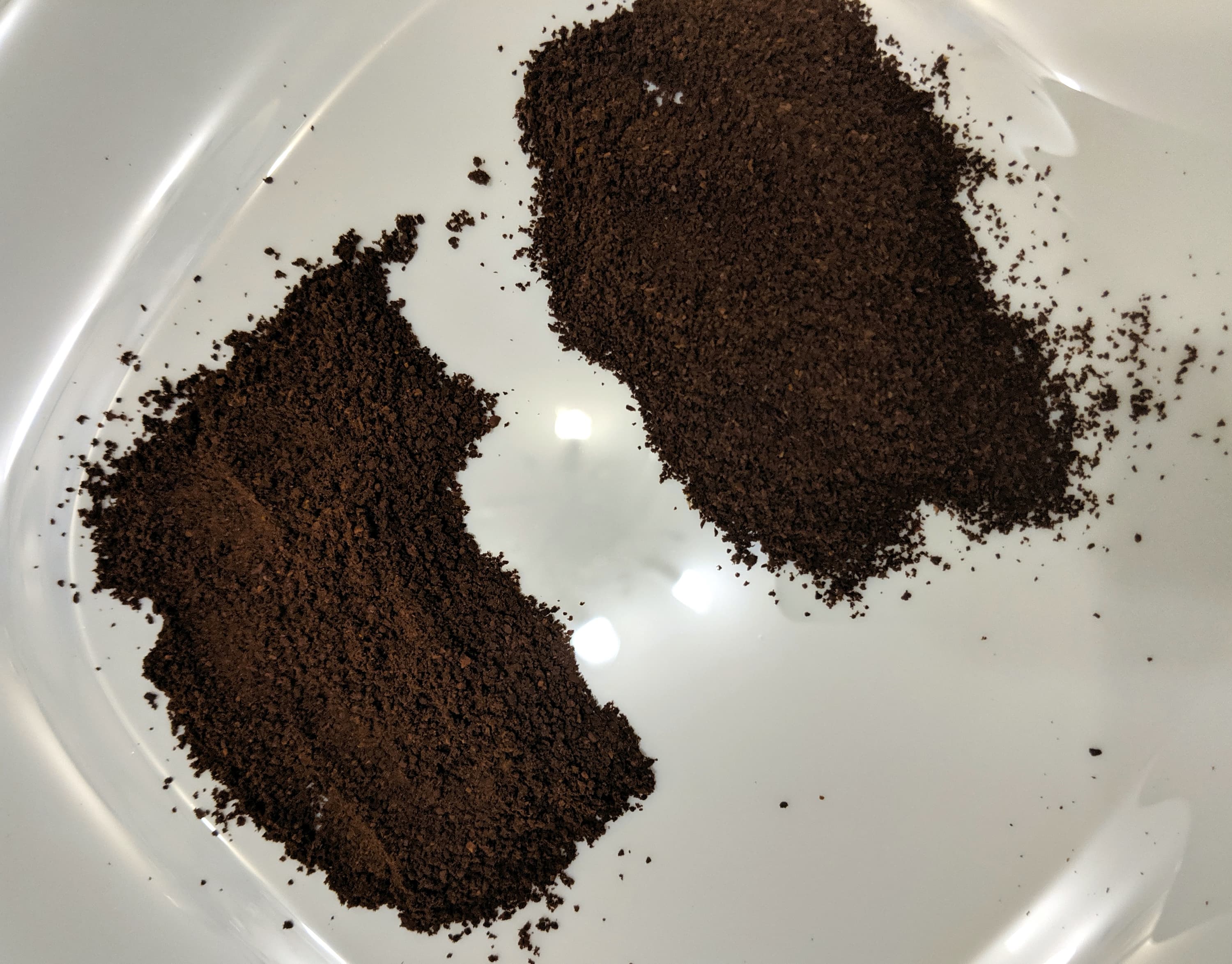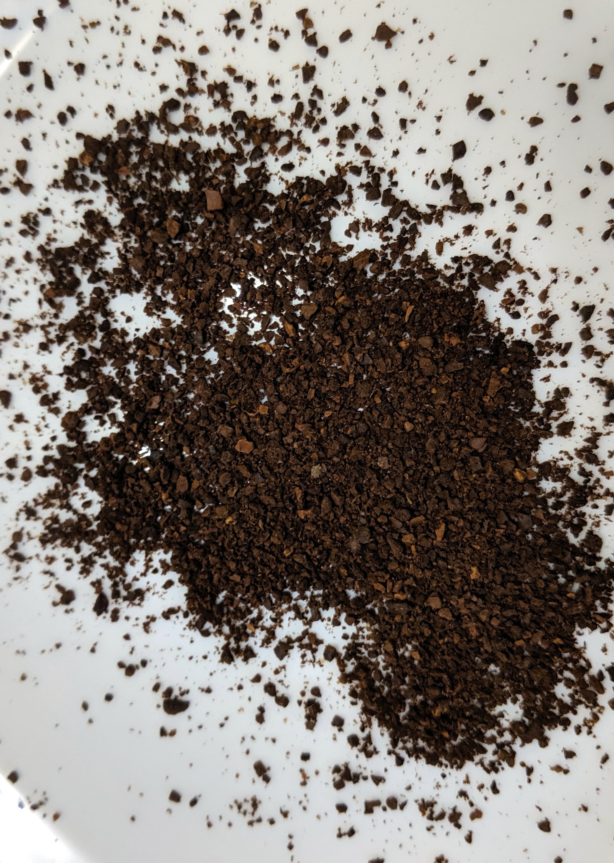 Через пять секунд все зерна были перемолоты, но частицы кофе были крупными, с острыми углами. Через еще пять (суммарно 10) секунд углы сгладились, но размер частиц был все еще крупнее фабричного. Еще 10 секунд: все частицы стали мельче и более однородными, но более крупными, чем контрольный образец. Догнали время перемалывания до 30 секунд суммарно — и вот практически идентичный фабричному результат.