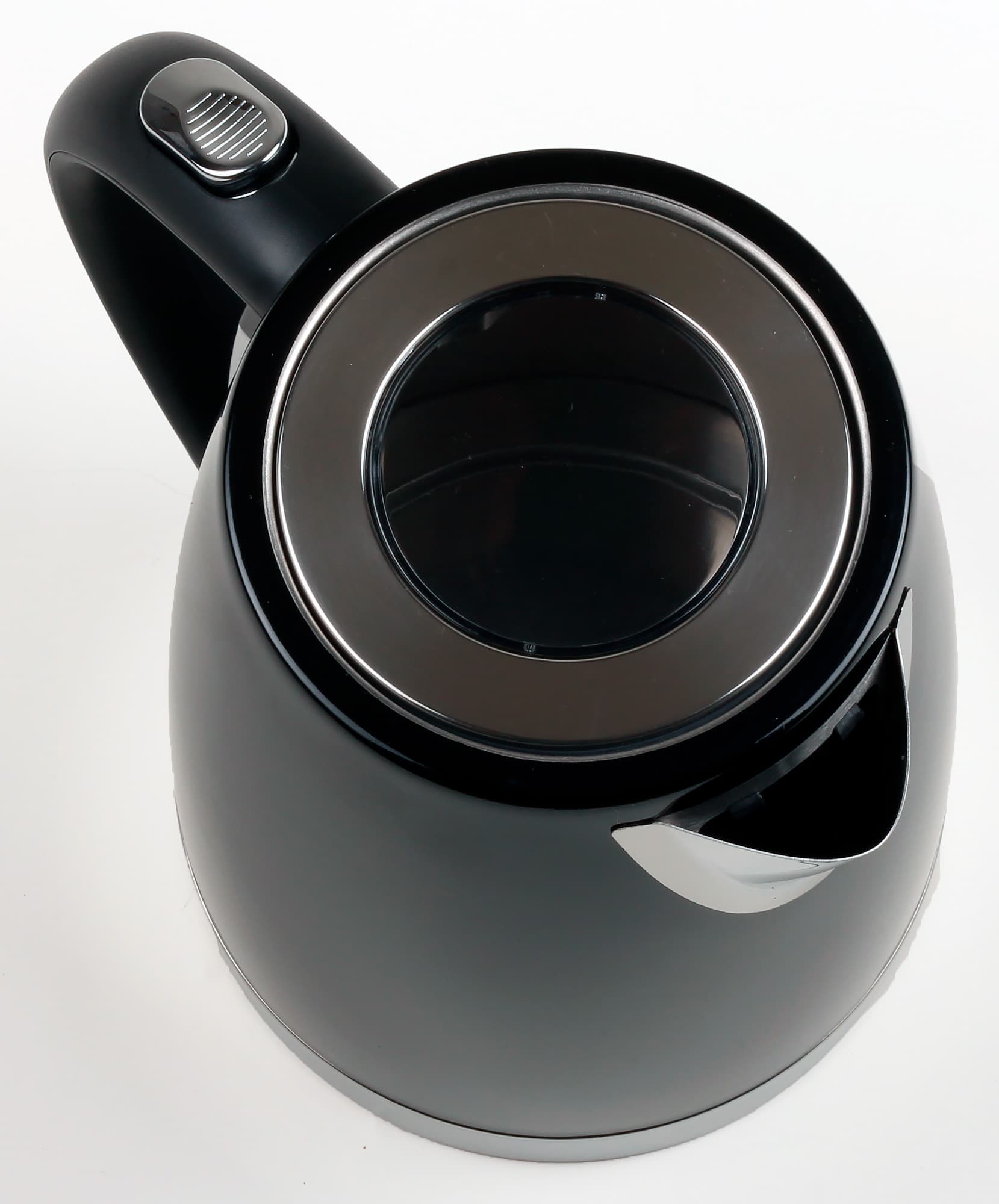 Корпус чайника на первый взгляд выглядит... пластиковым. Уж больно мы привыкли к тому, что если чайник сделан из нержавейки — то это гордо выставляется на всеобщее обозрение. Здесь же колба из нержавеющей стали снаружи аккуратно выкрашена в черный цвет.