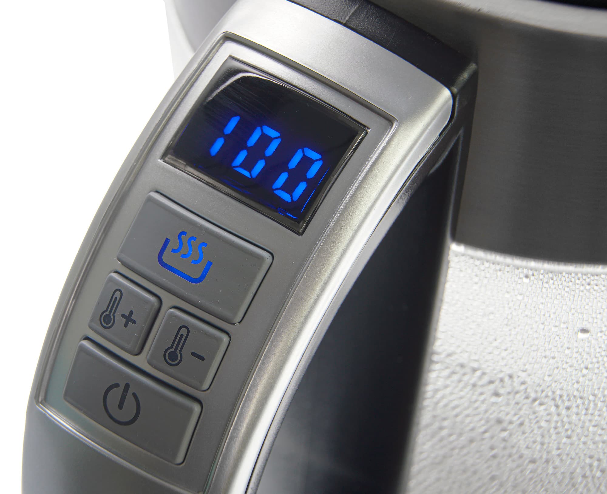Точности в 5 °C будет достаточно для большинства повседневных задач, однако ее не хватит для задач специфических — например, для заваривания кофе через воронку (если вам нужна точная температура, не кратная 5 градусам). Однако в случае необходимости можно воспользоваться «лайфхаком»: нагреть чайник до ближайшей подходящей температуры и подождать, пока он остынет на пару градусов. Благо всегда есть возможность нажать на кнопку и узнать текущую температуру воды в колбе.