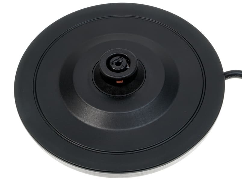 База чайника сделана из пластика (нижняя часть) и нержавеющей стали (боковые элементы). Снизу базы можно увидеть ножки с резиновыми наклейками, а также отсек для хранения (намотки) излишков шнура.