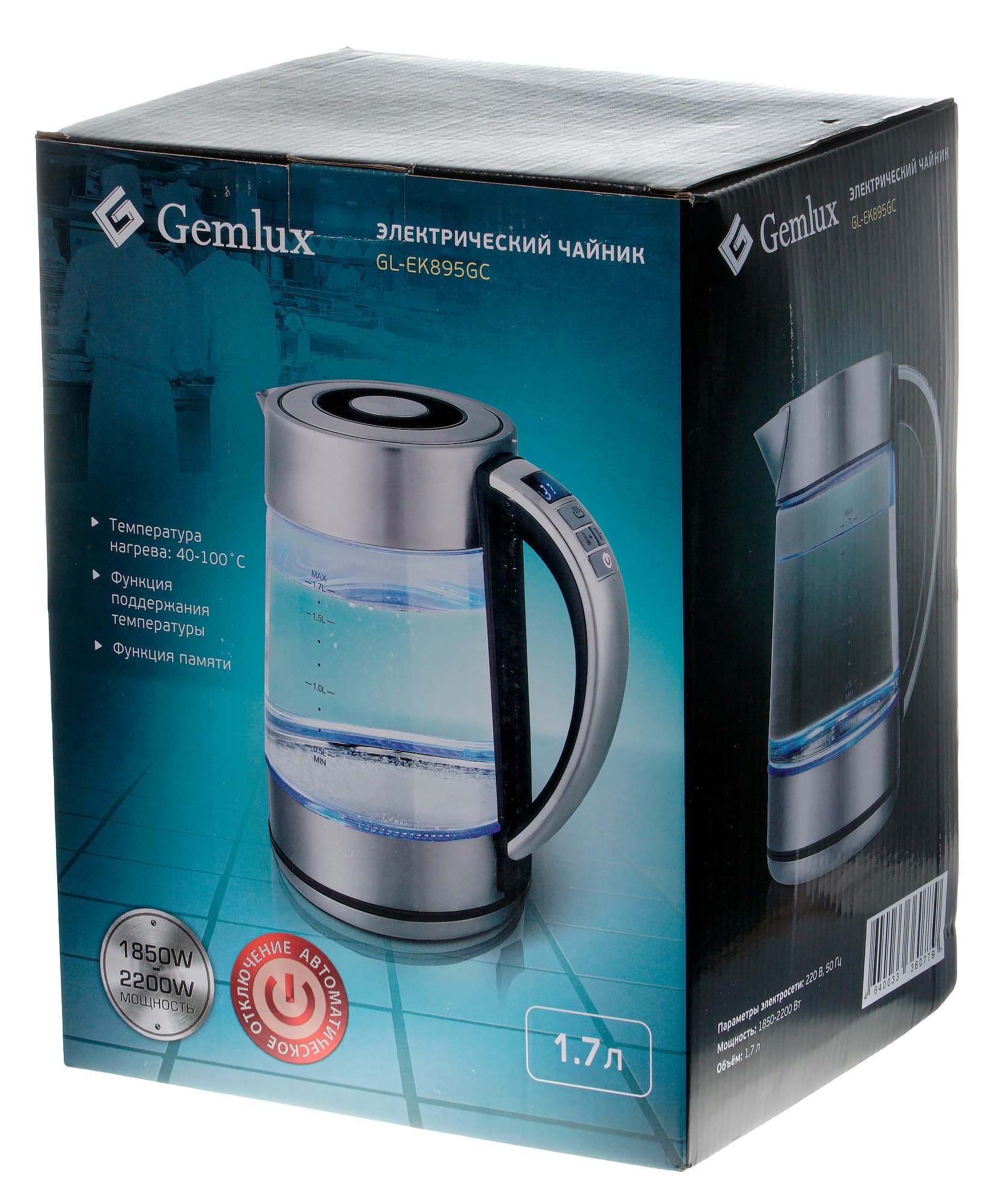 Они хорошо узнаваемы благодаря единому визуальному стилю, а всё многообразие моделей достигается комбинированием различных деталей и элементов: в наличии есть несколько стандартных колб, крышек, блоков управления, дисплеев и прочих элементов, которые разработчик сочетает в произвольном порядке, достигая тем самым модельного разнообразия. Наш герой — чайник Gemlux GL-EK895GC — является типичным примером такого устройства.