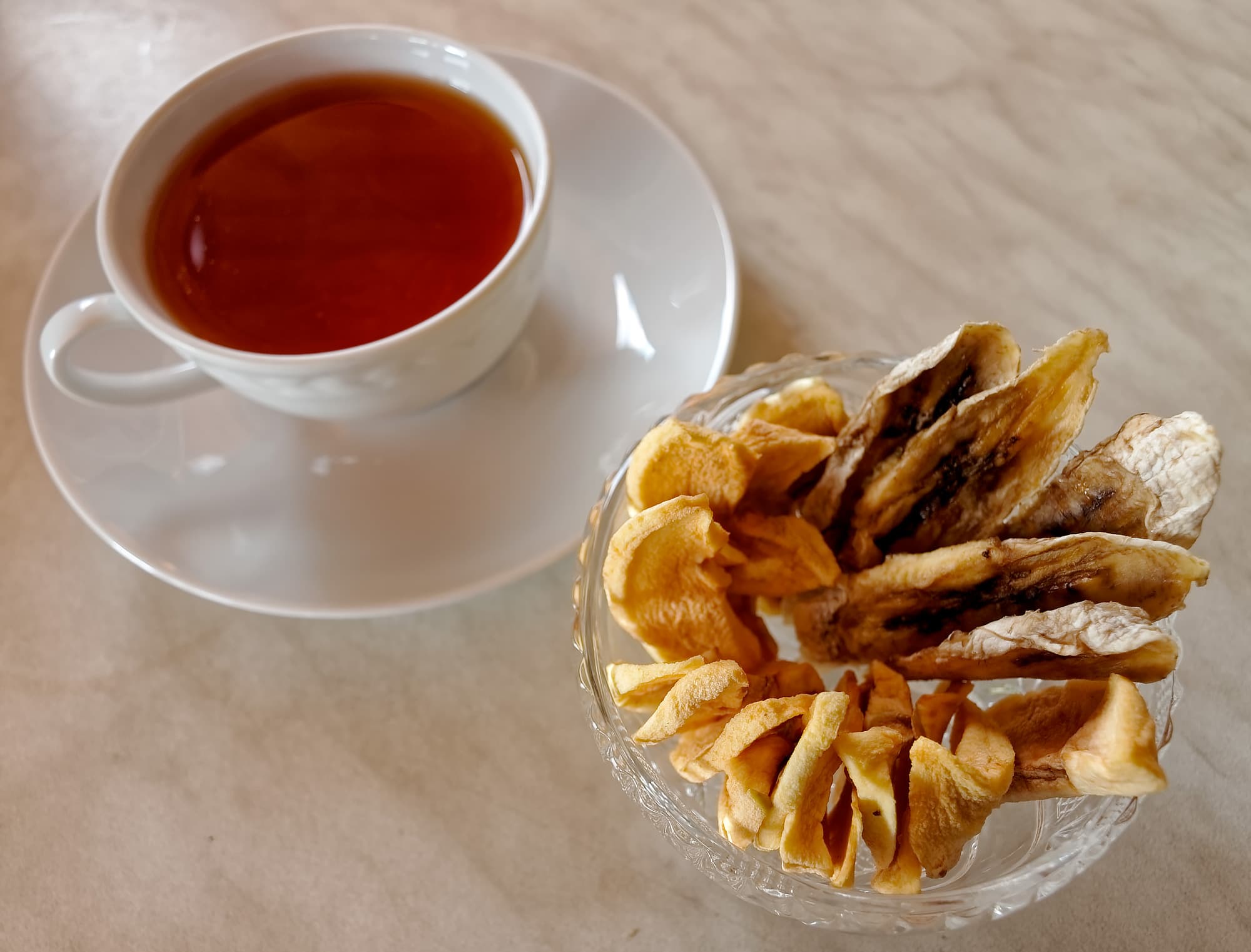 Надо заметить, что мы не добивались полного высушивания фруктов — они остались пластичными внутри и стали отличной заменой конфетам к чаю.