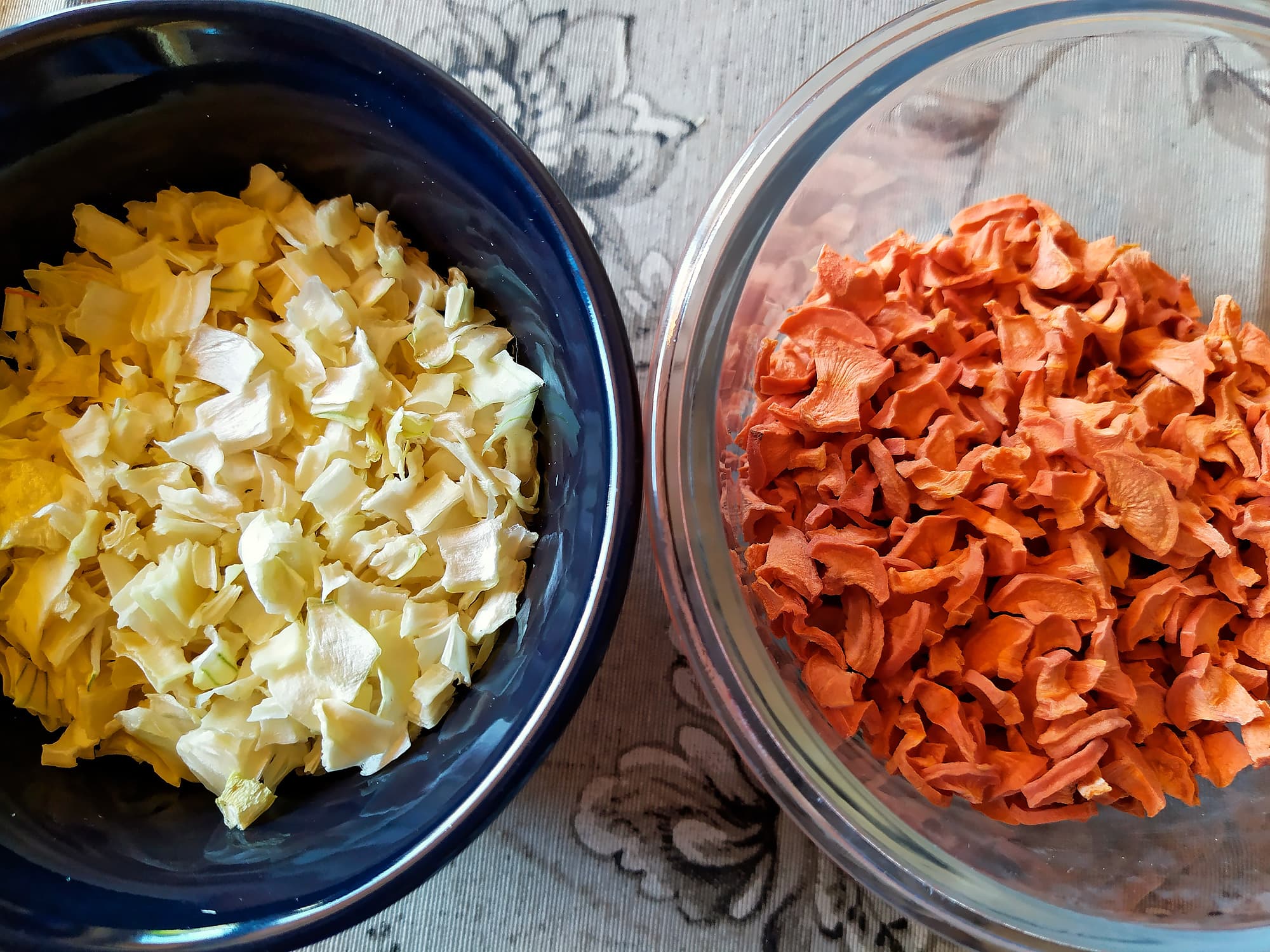 Корнеплоды сохранили свои ароматы и станут отличным дополнением к супам или другим блюдам. А для походной кухни это и вовсе идеальный вариант: после сушилки одна небольшая морковка поместится в спичечный коробок. Текстура готовых овощей сухая и ломкая, так что они могут долго храниться в стеклянной банке.