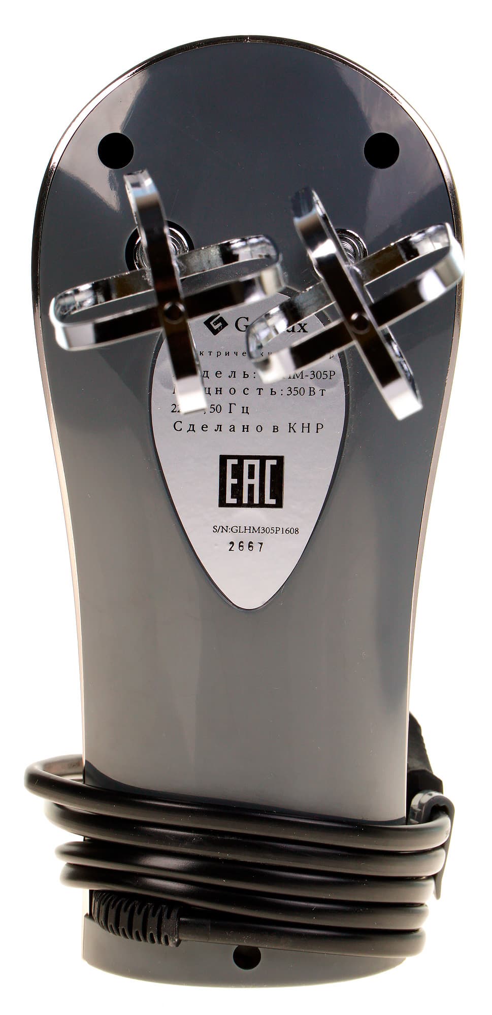 Вставляются насадки без усилий обычным для подобных миксеров способом. Снизу корпус прибора сделан из серого пластика, на котором располагается наклейка с параметрами и серийным номером.