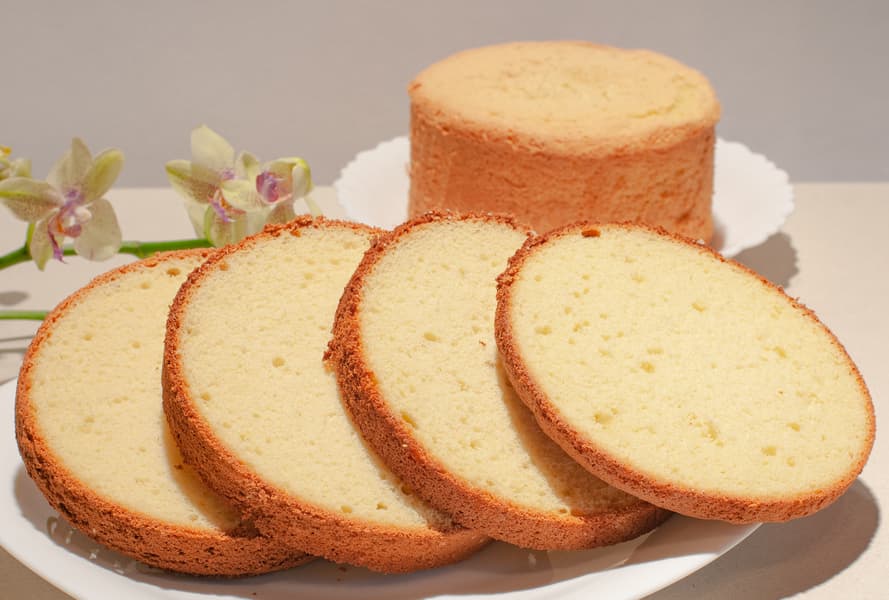 Аккуратно, на низкой скорости, не меняя насадок, вмешали в белки яичные желтки, ванильную пудру и муку. Залили получившуюся смесь в формы и отправили в духовку на 35 минут при 180 °C. Получившийся бисквит остудили, разрезали на коржи.