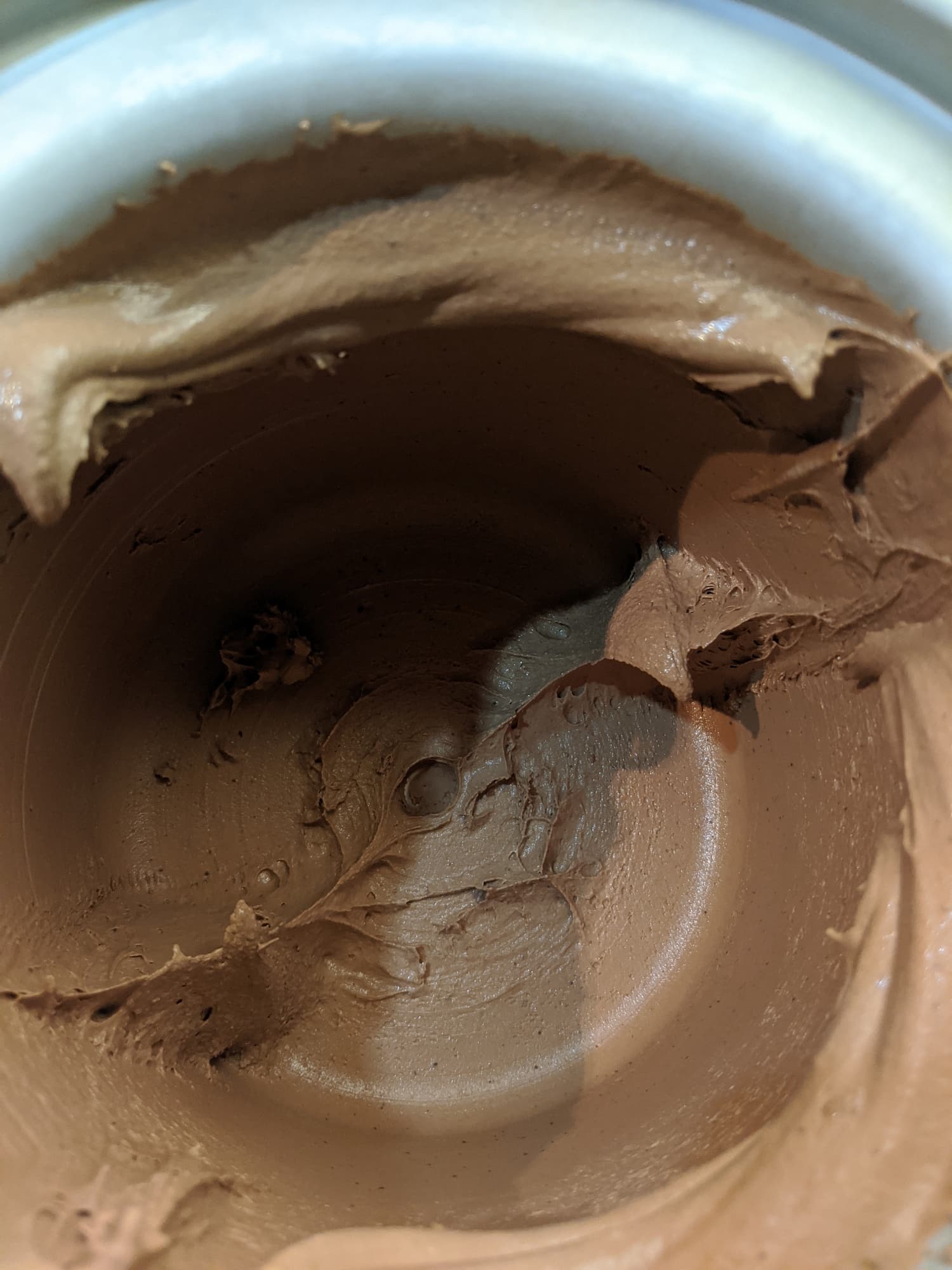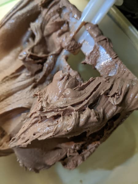 Готовое мороженое может почти полностью остаться на мешалке — или, по крайней мере, так поступит значительная его часть. Остатки можно выложить пластиковой или силиконовой ложкой или лопаткой, а вот металлическая ложка может поцарапать стенки чаши.