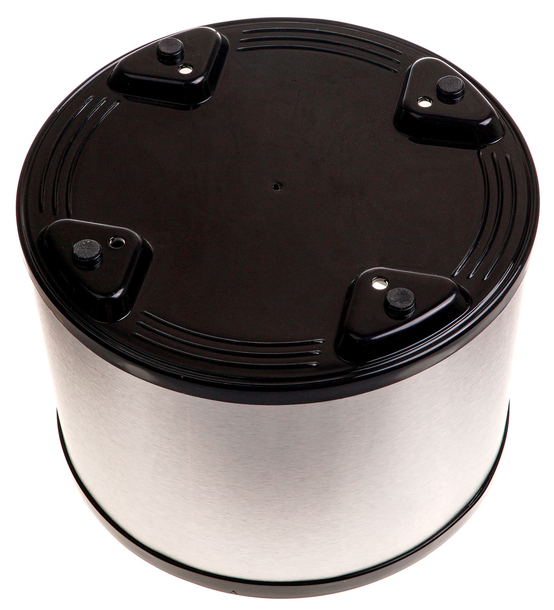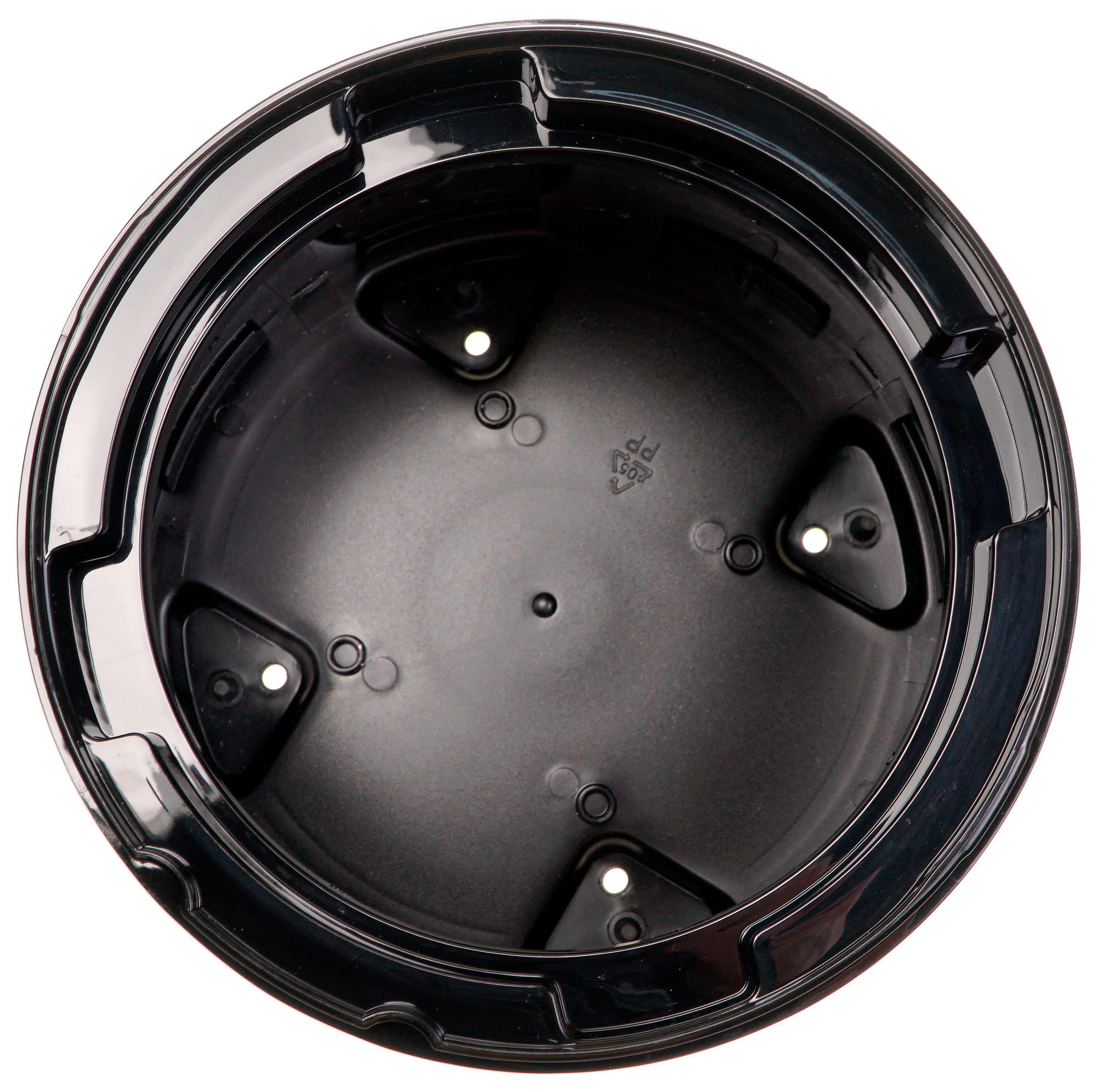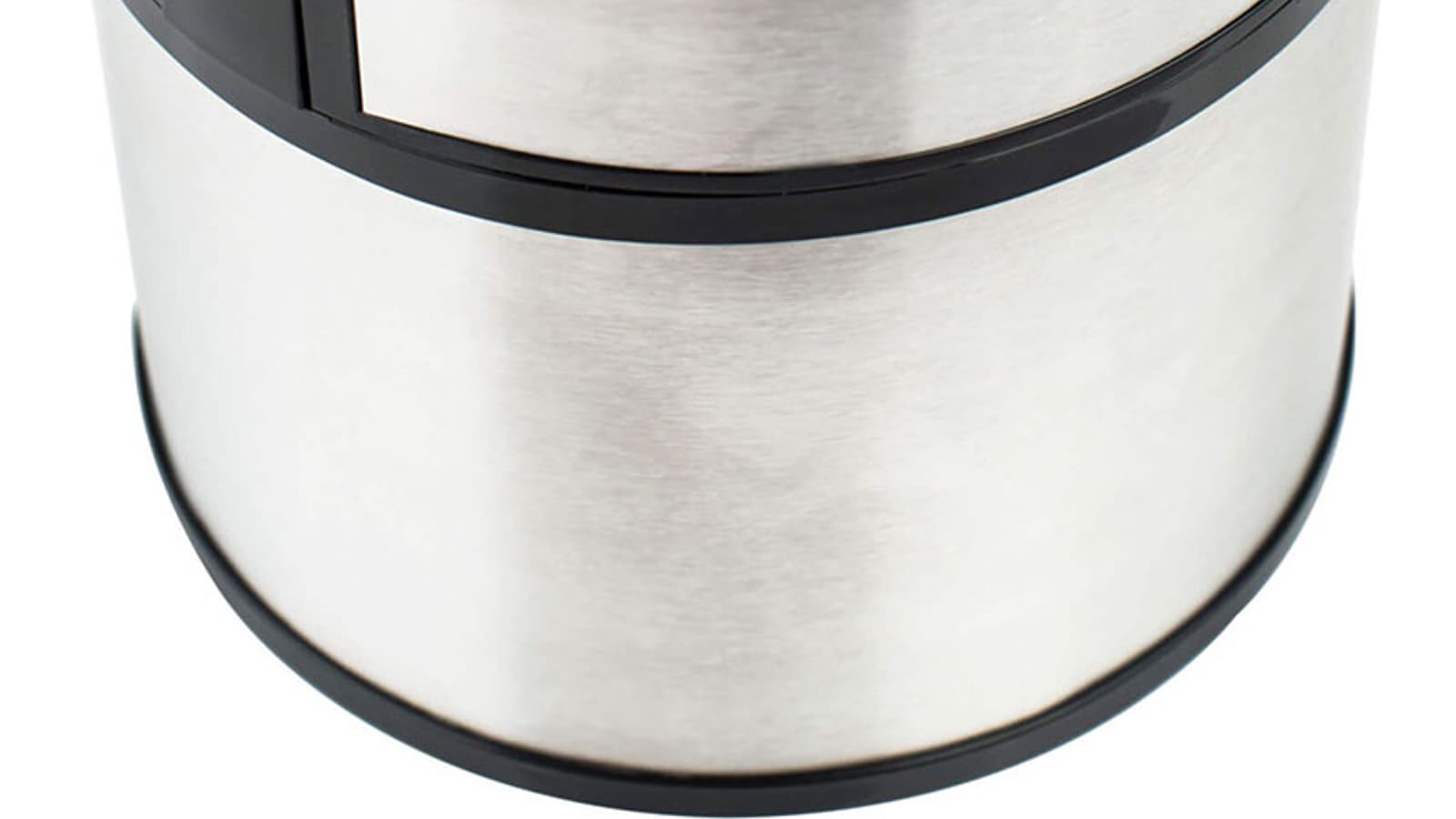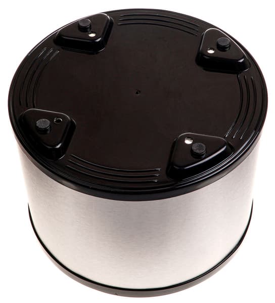 Крышка сделана из черного пластика со вставками из нержавеющей стали на боковой поверхности. Там же расположены две защелки для крепления крышки на нижней части корпуса и стрелка, указывающая на правильное положение крышки при закрывании (ее надо совместить со стрелкой на нижней части).