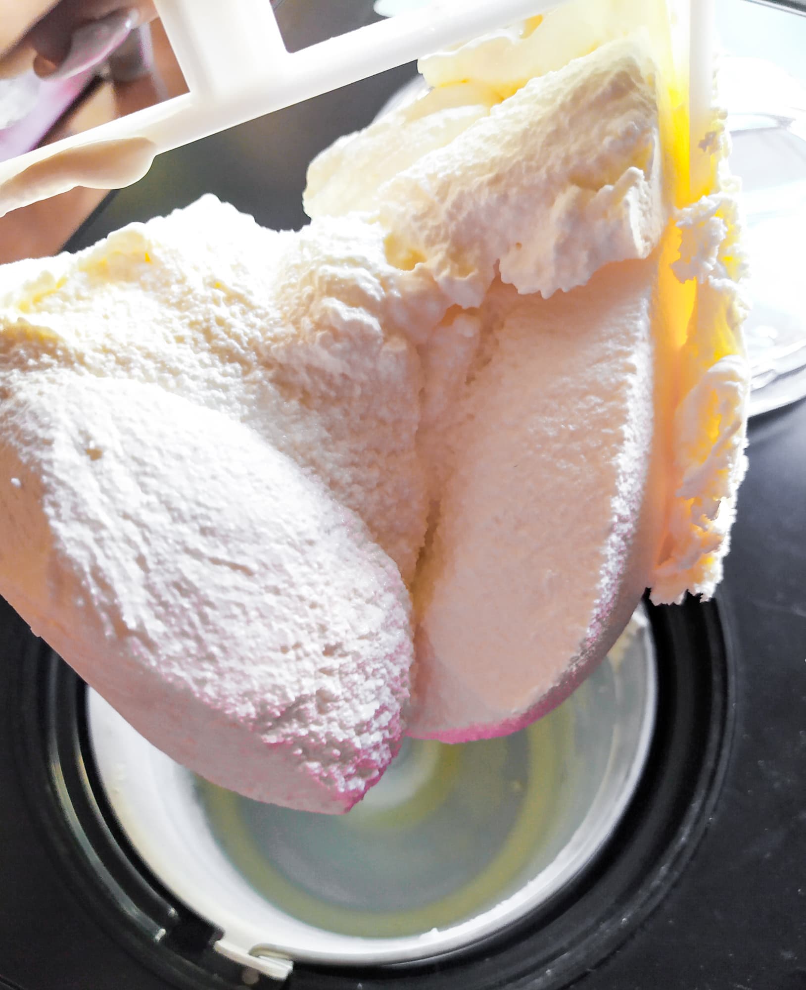 Через 20 минут самые упорные остатки смеси поддались холоду, сорбет облепил мешалку и видоизменяться больше не желал, так что по прошествии получаса с момента запуска мы отключили фризер.